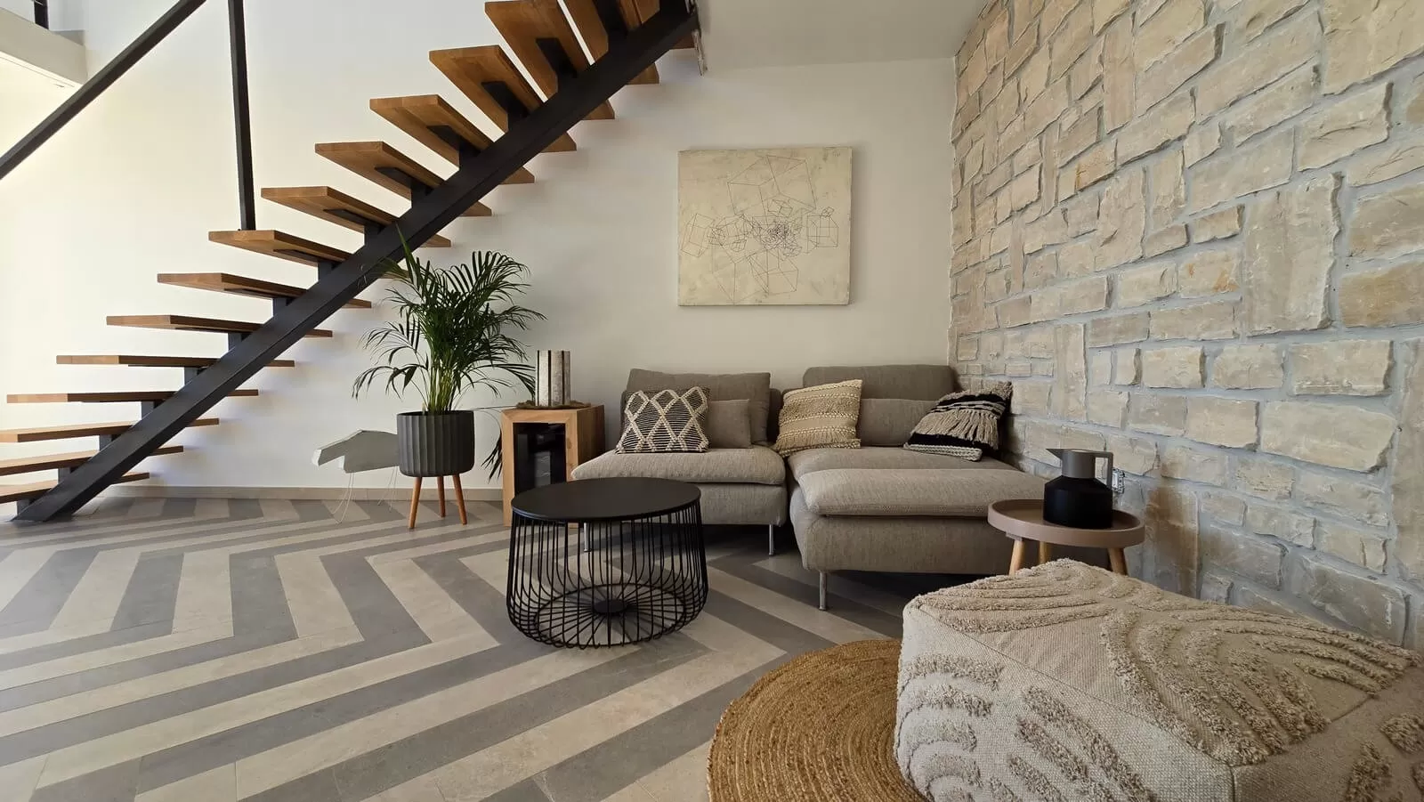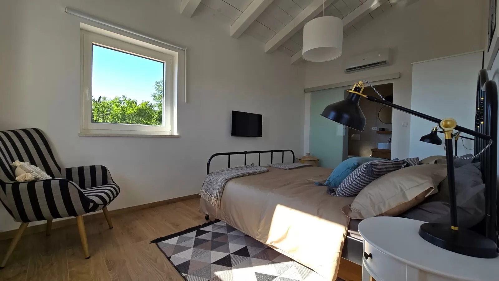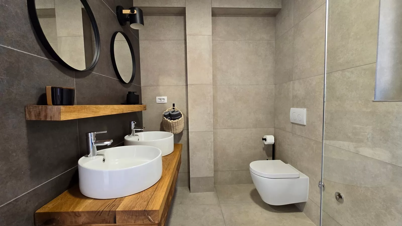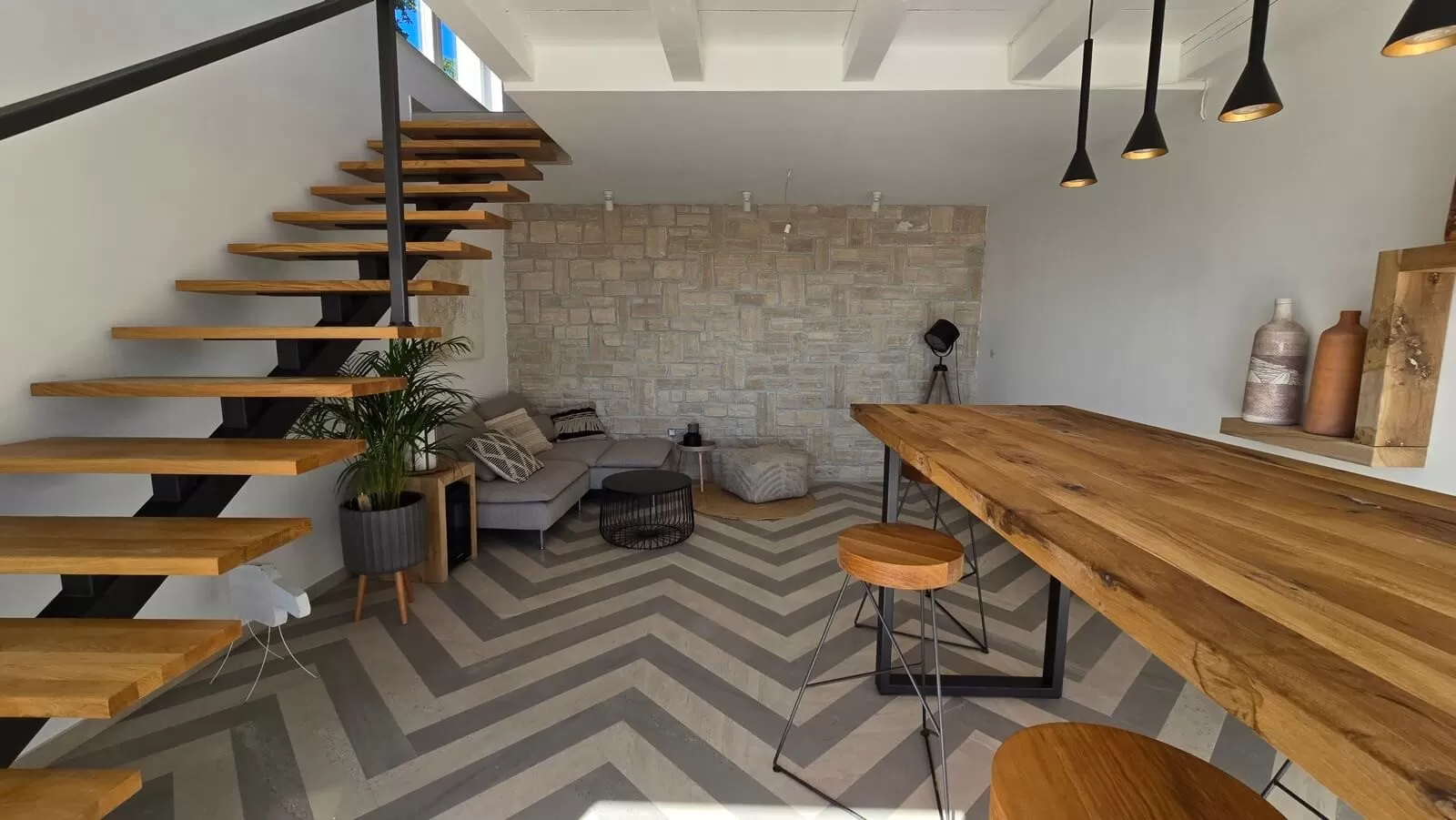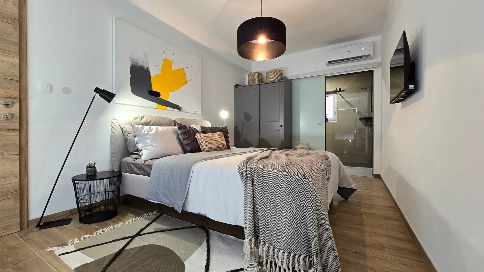 Im Inneren begeistert die Villa Luminosa mit ihrer modernen Schlichtheit und wohnlichen Wärme. Großzügige Fenster lassen das Tageslicht ungehindert hereinströmen und betonen die Verbindung zwischen Architektur und Natur. Der offene Wohnbereich kombiniert klare Linien mit natürlichen Akzenten – sanfte Beige- und Holztöne, stilvolle Kunstwerke und hochwertige Möbel schaffen ein Ambiente, das Ruhe und Eleganz ausstrahlt. Die voll ausgestattete Küche mit Kochinsel geht fließend in den Essbereich über, dessen großer Holztisch einen herrlichen Blick auf das Meer bietet. Das Wohnzimmer mit modernen Sofas und minimalistischen Details ist der ideale Ort, um den Tag bei einem Glas Wein ausklingen zu lassen. Drei Schlafzimmer, jeweils mit eigenem Bad, Klimaanlage und Fernseher, garantieren Komfort und Privatsphäre. Hochwertige Bettwäsche, sorgfältig ausgewählte Accessoires und natürliche Materialien schaffen ein Gefühl von entspannter Eleganz. Die Badezimmer sind modern und stilvoll, mit Glasduschen, Steinfliesen und sanfter Beleuchtung, die an ein Spa erinnert.