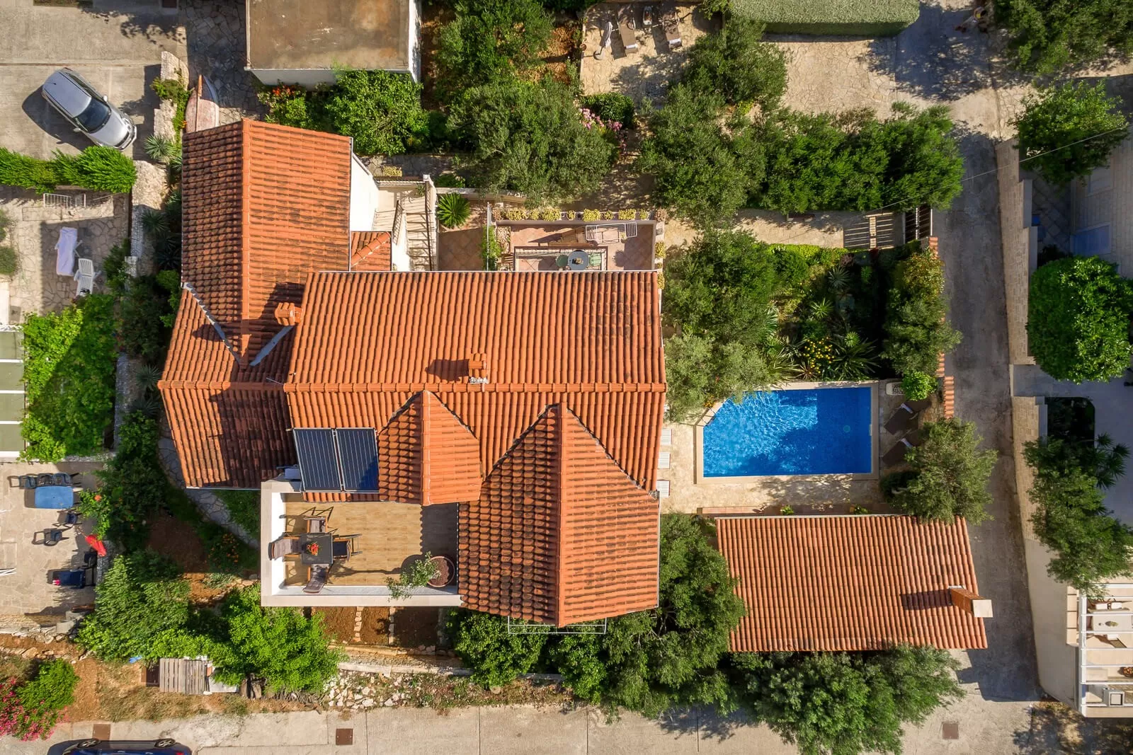 Die Villa Malini verfügt über 5 Schlafzimmer und bietet bequem Platz für 9 Personen. Die voll ausgestattete Küche eignet sich hervorragend zum Probieren von Speisen, und das Wohnzimmer ist perfekt für eine Auszeit von der intensiven Hitze am Nachmittag. Entspannen Sie sich auf den Liegestühlen zwischen den Bäumen und finden Sie Ihren Platz, um Ihren Lieblingskaffee zu genießen. Tauchen Sie in den Pool ein, organisieren Sie ein Abendessen mit dalmatinischen Gesanggruppen oder tauchen Sie in die maritime Atmosphäre ein. Wenn Sie hungrig sind, bereiten Sie Ihre Lieblingsgerichte auf dem Grill auf der Außenterrasse zu. Die gesamte Terrasse am Pool ist überdacht und bietet einen wunderschönen Blick auf das Meer, ideal für romantische Abendessen mit exquisitem lokalen Wein. Die luxuriöse Villa Malini verfügt über ein vollständig umzäuntes Grundstück und Parkplätze für 2 Autos.