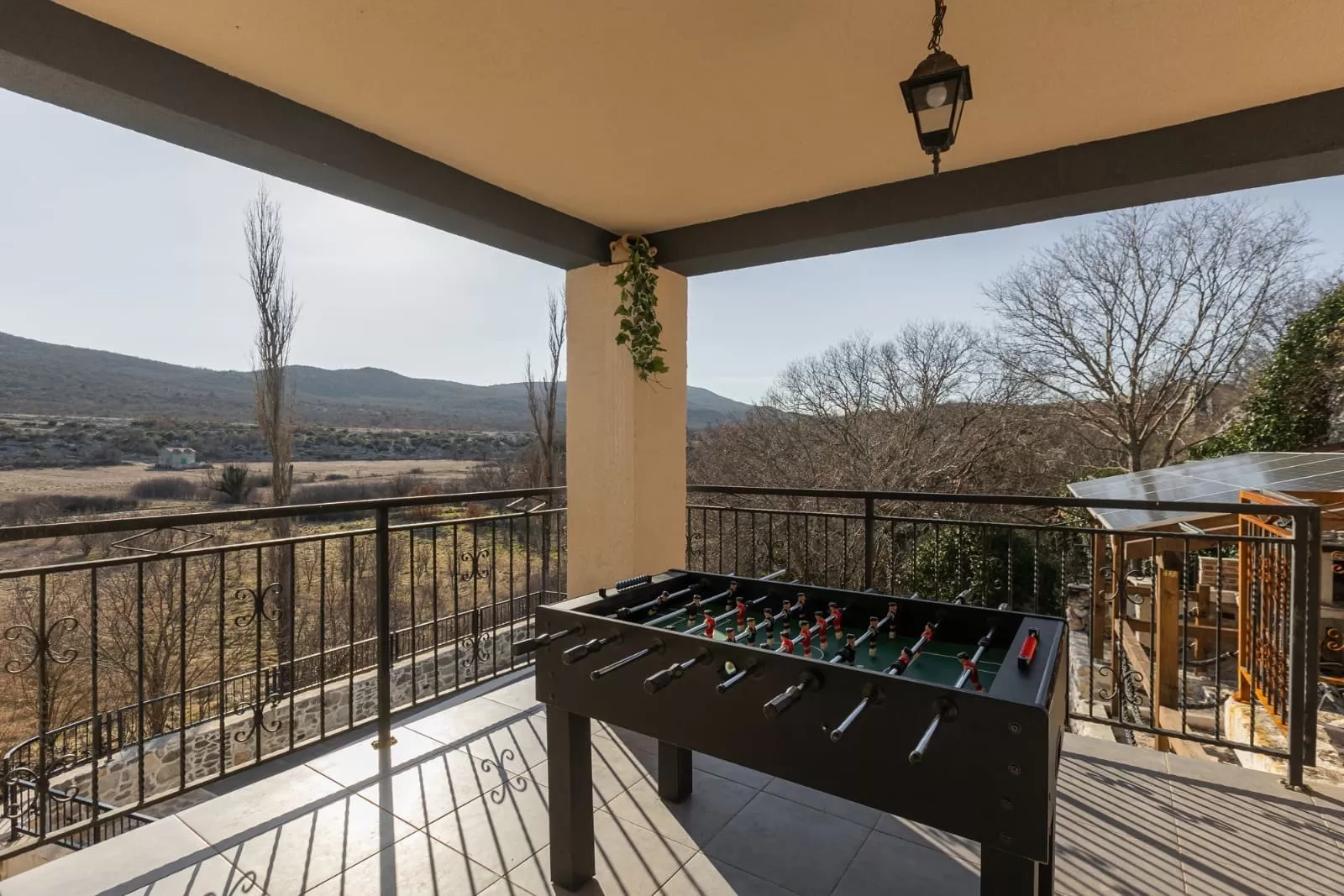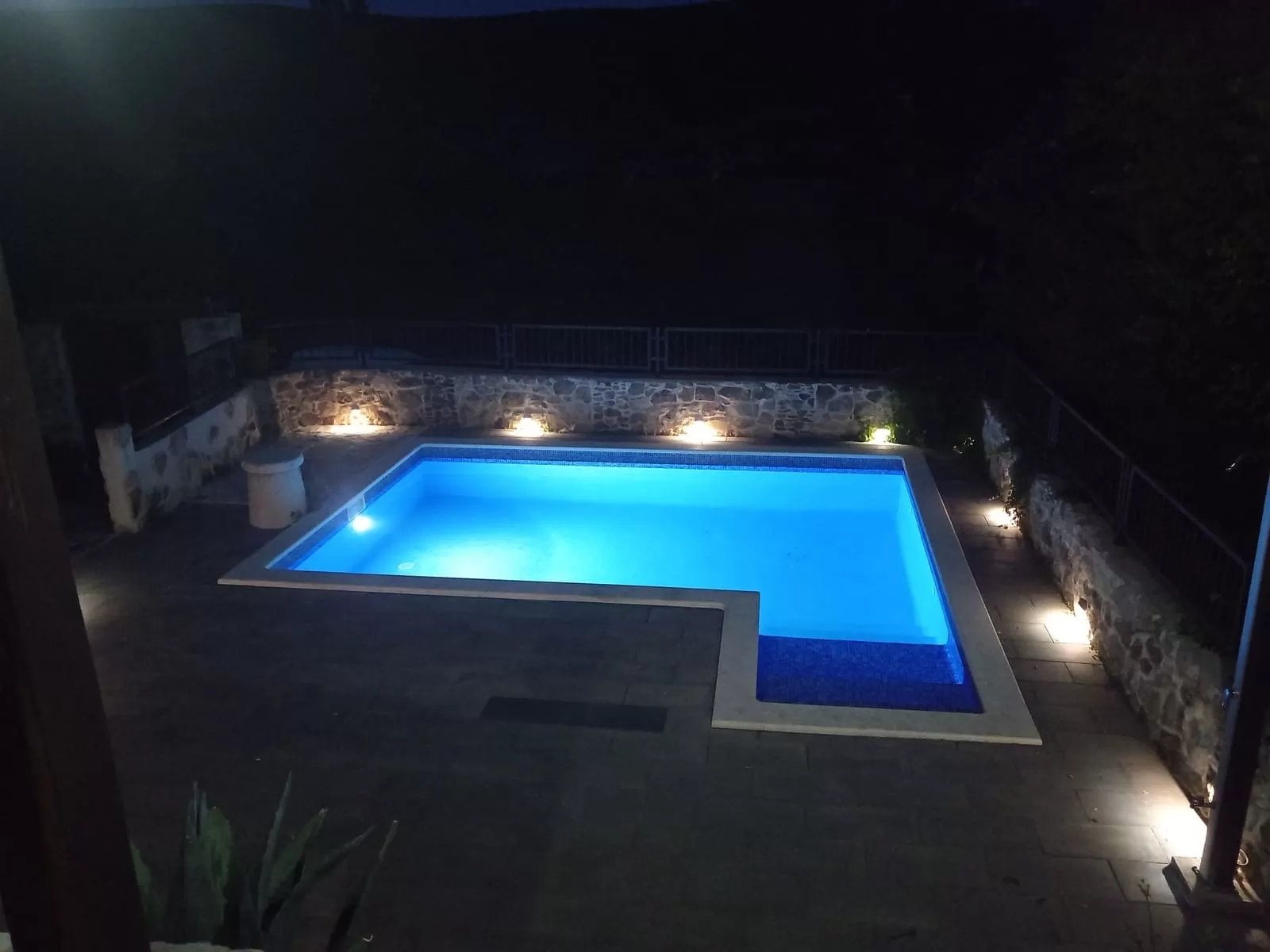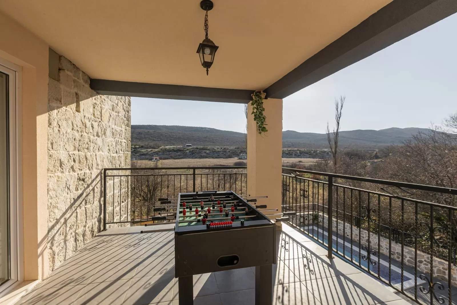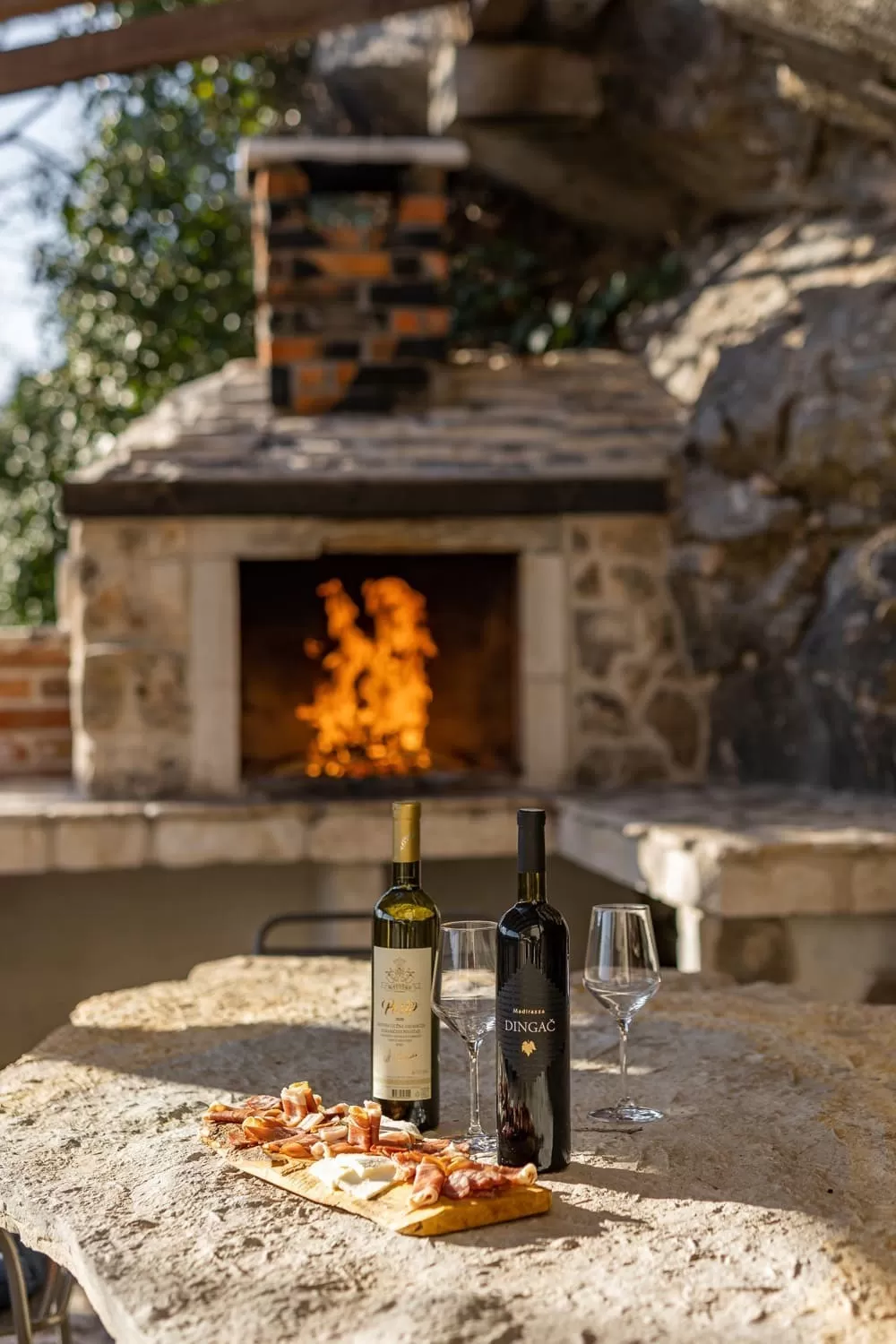 Der Außenbereich der Villa Mandalina vereint auf perfekte Weise rustikalen dalmatinischen Charme mit funktionalen Annehmlichkeiten für Entspannung und Unterhaltung. Im Zentrum des Hofes befindet sich ein privater Pool, umgeben von einer Steinmauer, die absolute Privatsphäre bietet, während die Sonnenterrasse viel Platz zum Sonnenbaden bietet. Von der überdachten Terrasse aus eröffnet sich ein Panoramablick auf die umliegenden Hügel und unberührte Natur. Den Gästen steht ein traditioneller Grill aus Stein und Ziegel zur Verfügung – ideal zur Zubereitung lokaler Spezialitäten im Freien. Ein Tischfußball auf der Terrasse sorgt für zusätzlichen Spaß für Gäste jeden Alters. Das gesamte Grundstück ist eingezäunt und liebevoll gestaltet, mit authentischen Steinwegen, Holzelementen und mediterranen Pflanzen. Der Einsatz natürlicher Materialien und traditioneller Architektur verleiht dem Raum eine warme, einladende Atmosphäre. Ein Parkplatz für bis zu drei Fahrzeuge befindet sich innerhalb des umzäunten Grundstücks. Die Villa Mandalina ist perfekt für Gäste, die Ruhe, Natur und Privatsphäre genießen möchten – ohne auf Komfort zu verzichten.