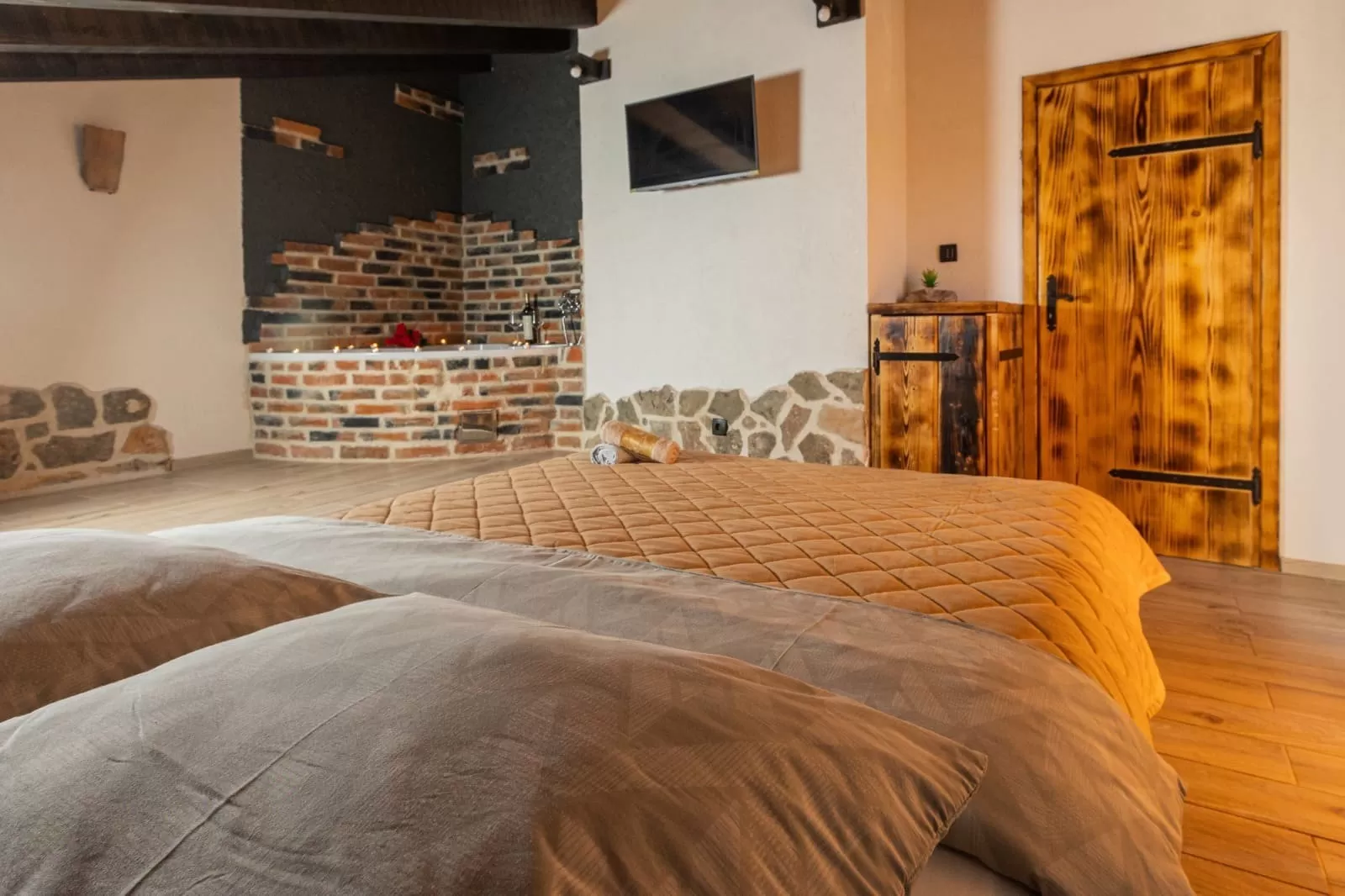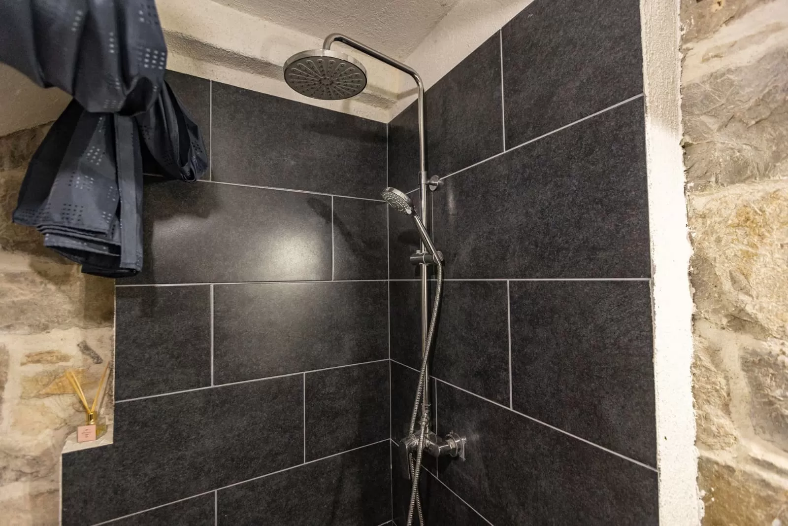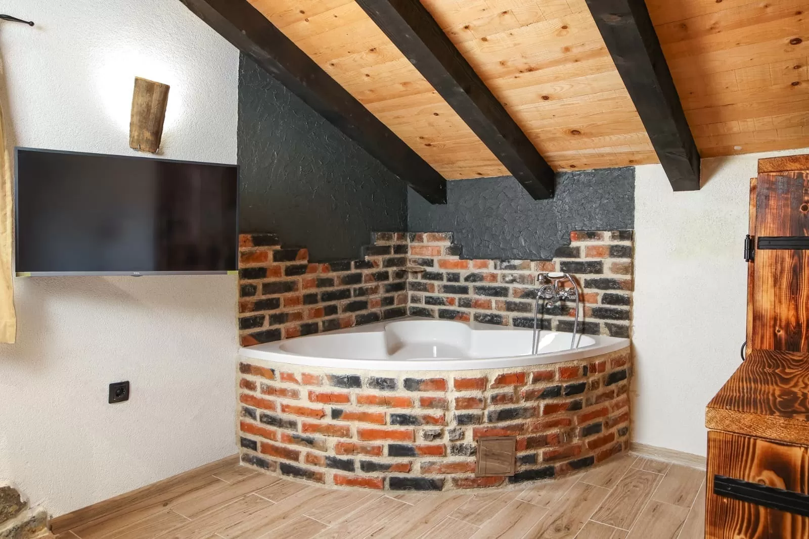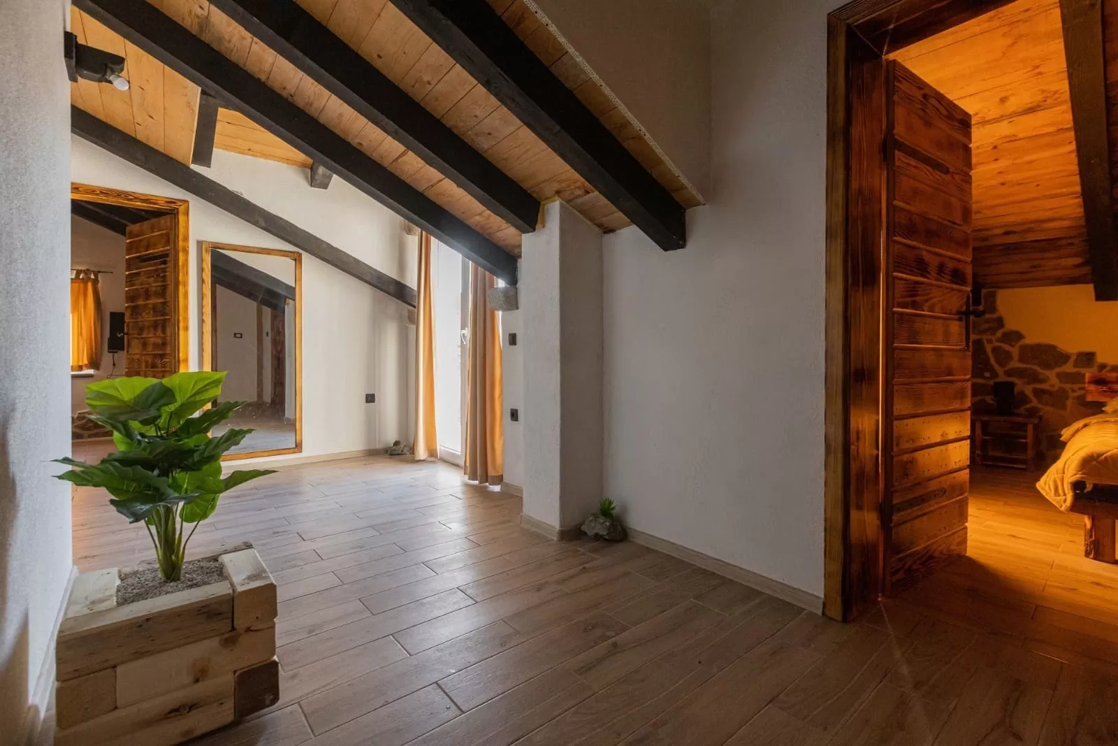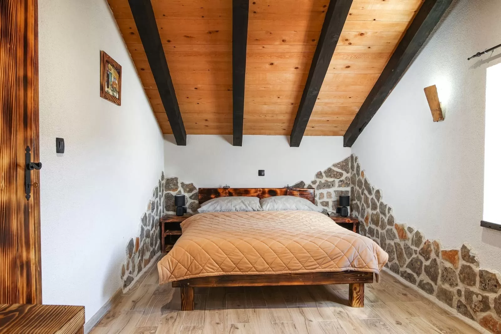 Das Innere der Villa strahlt Wärme, Charakter und eine besondere Kombination aus rustikalem Charme und modernen Details aus. Stein und Holz dominieren den Raum und schaffen eine authentische dalmatinische Atmosphäre mit einem hohen Maß an Komfort. Das geräumige Wohnzimmer ist mit einer modernen Eckcouch, einem Holztisch und einem Kamin ausgestattet – perfekt zum Entspannen an kühleren Abenden. Einzigartige Elemente wie der integrierte Baum und freiliegende Holzbalken verleihen dem Raum eine natürliche Eleganz. Die handgefertigte Küche aus rustikalem Holz und Ziegeln ist ideal zum Kochen in gemütlicher, heimeliger Atmosphäre. Die Schlafzimmer sind schlicht und stilvoll eingerichtet, und ein besonderes Highlight ist die romantische Badewanne im Hauptschlafzimmer – ideal für entspannte Stunden bei Kerzenschein und einem Glas Wein. Jeder Winkel der Villa wurde mit Liebe zum Detail gestaltet, um ein Gefühl von Komfort, Privatsphäre und Luxus zu vermitteln. Das Interieur ist ideal für alle, die einen authentischen Urlaub in Kroatien mit einem Hauch von Eleganz und Natur erleben möchten.