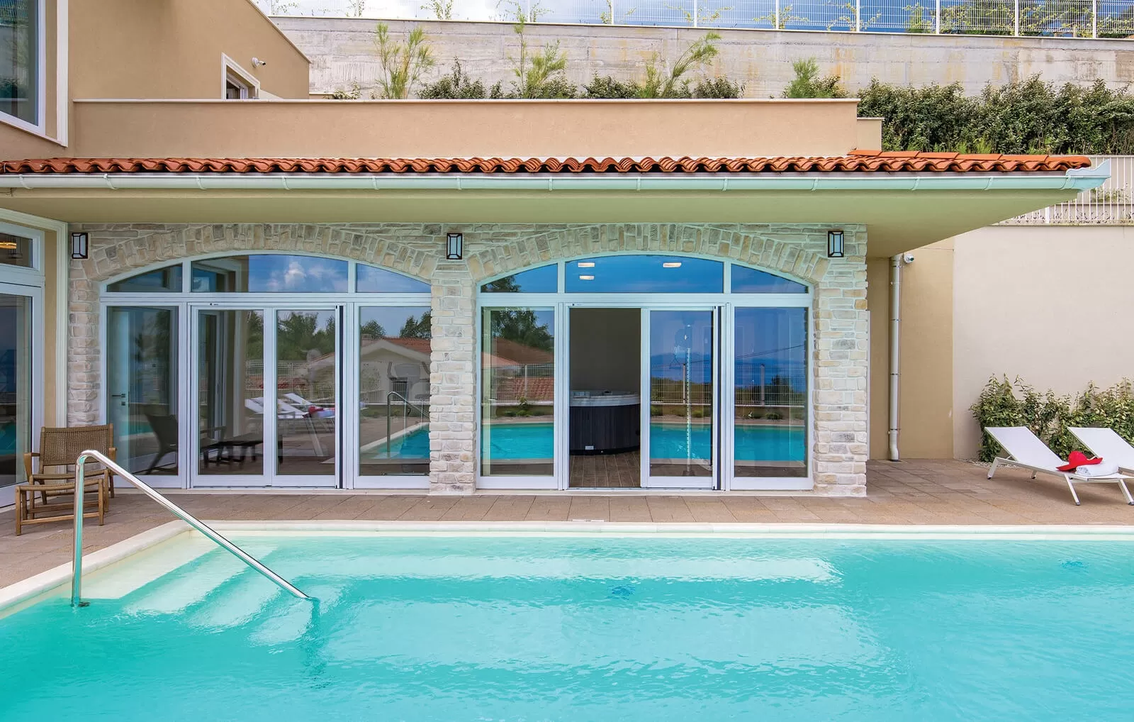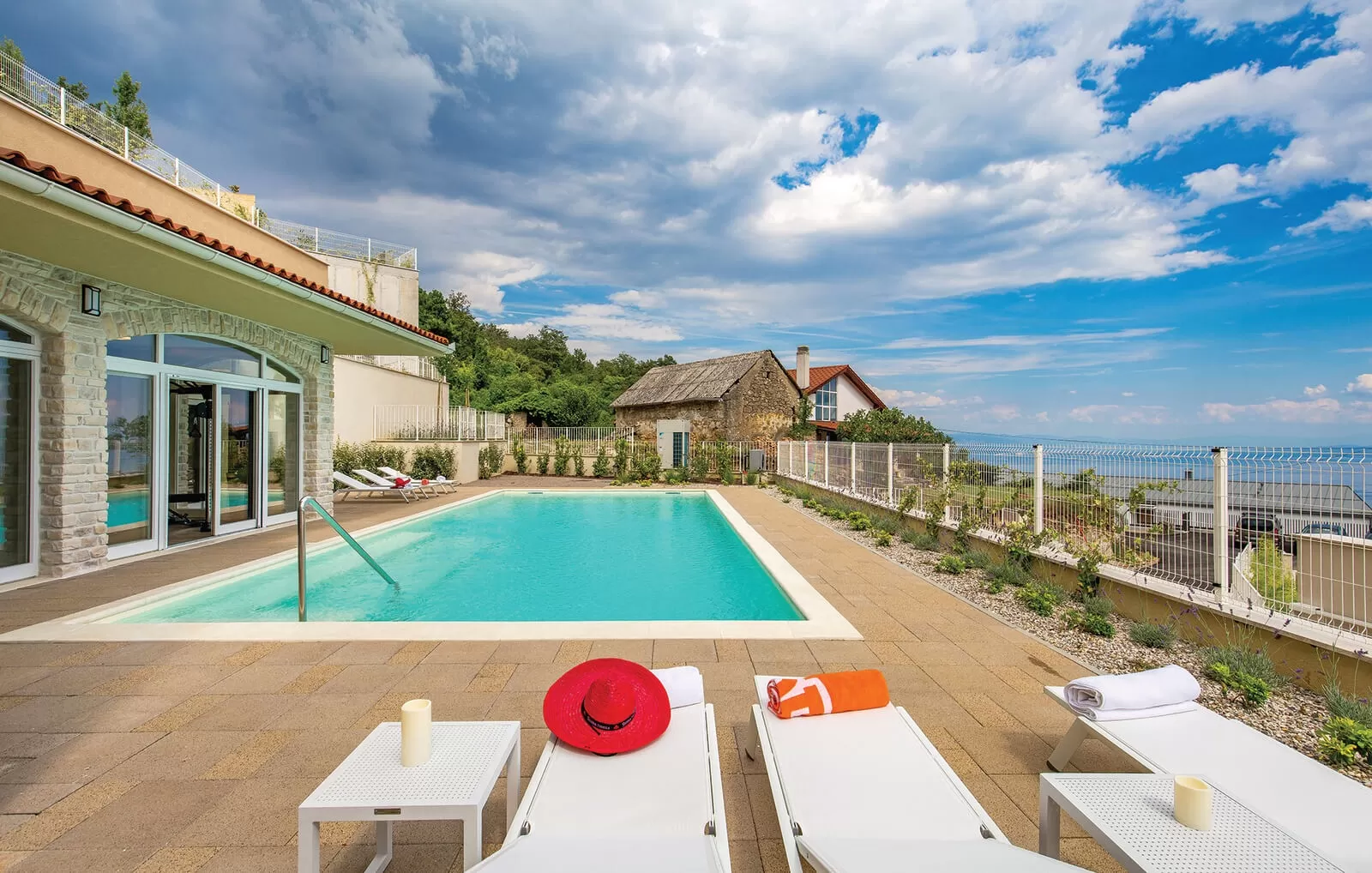 Villa Natura IV ist Teil eines Komplexes von 4 Luxusvillen, die separat oder zusammen gemietet werden können und somit eine ausgezeichnete Wahl für große Gruppen von Personen sein können. Sie befinden sich auf einem erhöhten Teil des kleinen, ruhigen Ortes Veprinac, direkt oberhalb von Opatija. Da die Villen auf einem kaskadenartigen Gelände gebaut sind, bietet jede einen wunderbaren Panoramablick auf die Kvarner Bucht und die Insel Krk. Jede der erwähnten Luxusvillen Natura verfügt über einen Außenpool mit Heizmöglichkeit und alle Schlafzimmer haben ein eigenes Badezimmer. Außerdem verfügt jede Villa über ein komplett eingezäuntes Grundstück, was für Familien mit Kindern und Haustieren ein großer Vorteil ist und den Gästen gleichzeitig zusätzliche Privatsphäre bietet. Alle Villen sind von außen im traditionellen Stil mit Steinelementen, Fensterläden aus Holz und einem schrägen Dach gebaut, während im Inneren ein moderner Dekorationsstil mit viel zusätzlicher Einrichtung überwiegt. Jede Villa verfügt über genügend Parkplätze für Gäste die mit dem Auto anreisen.