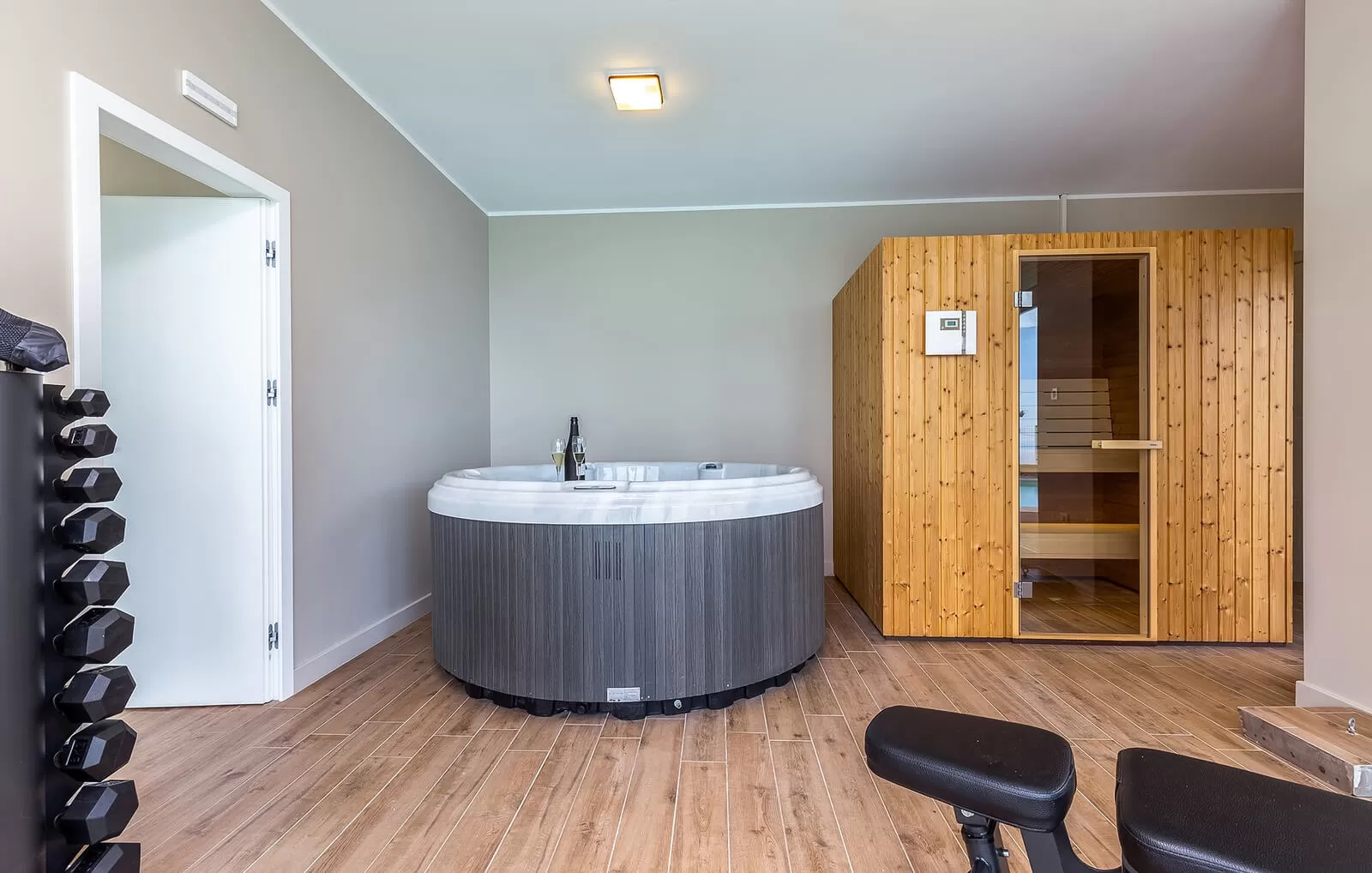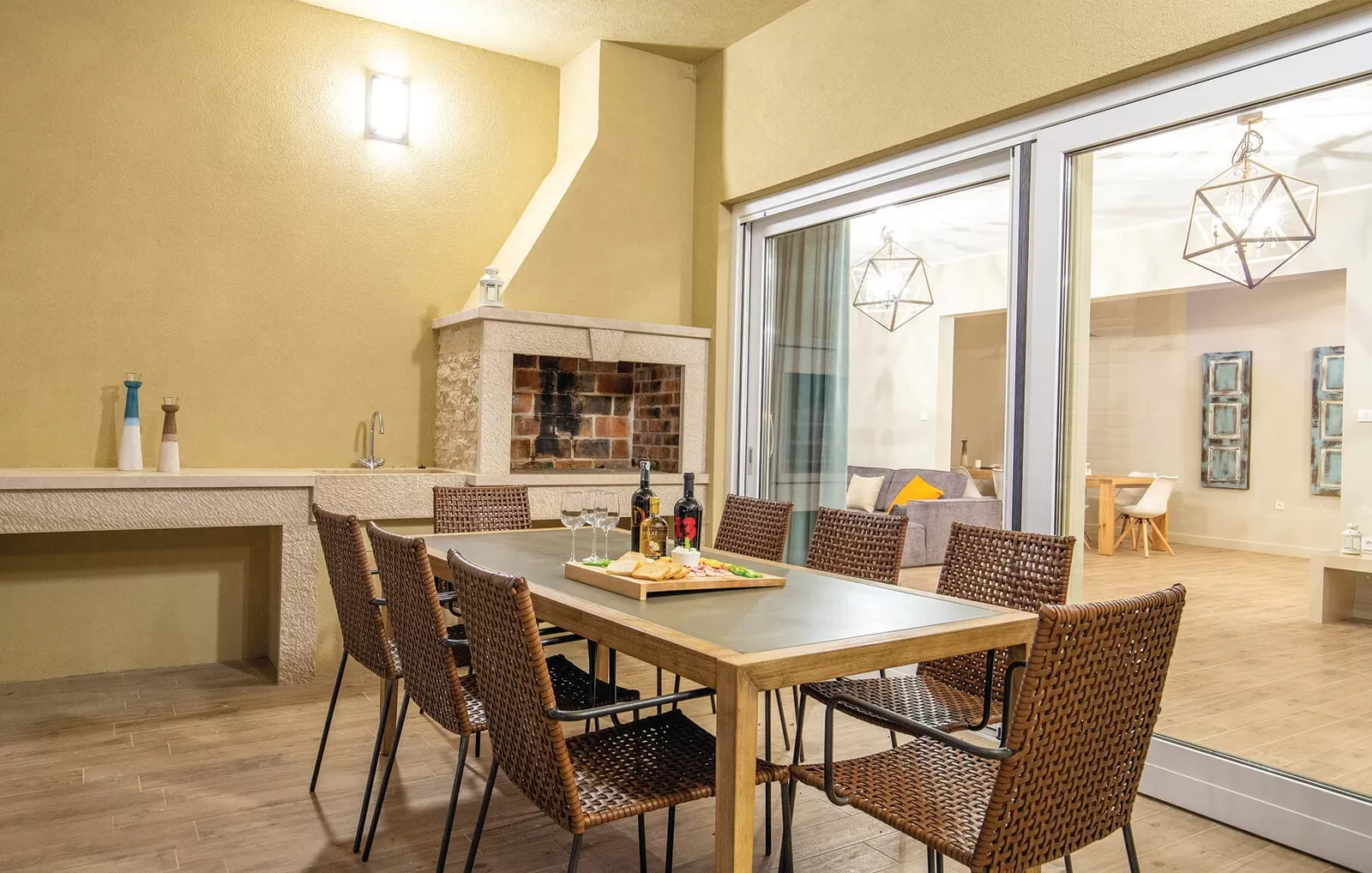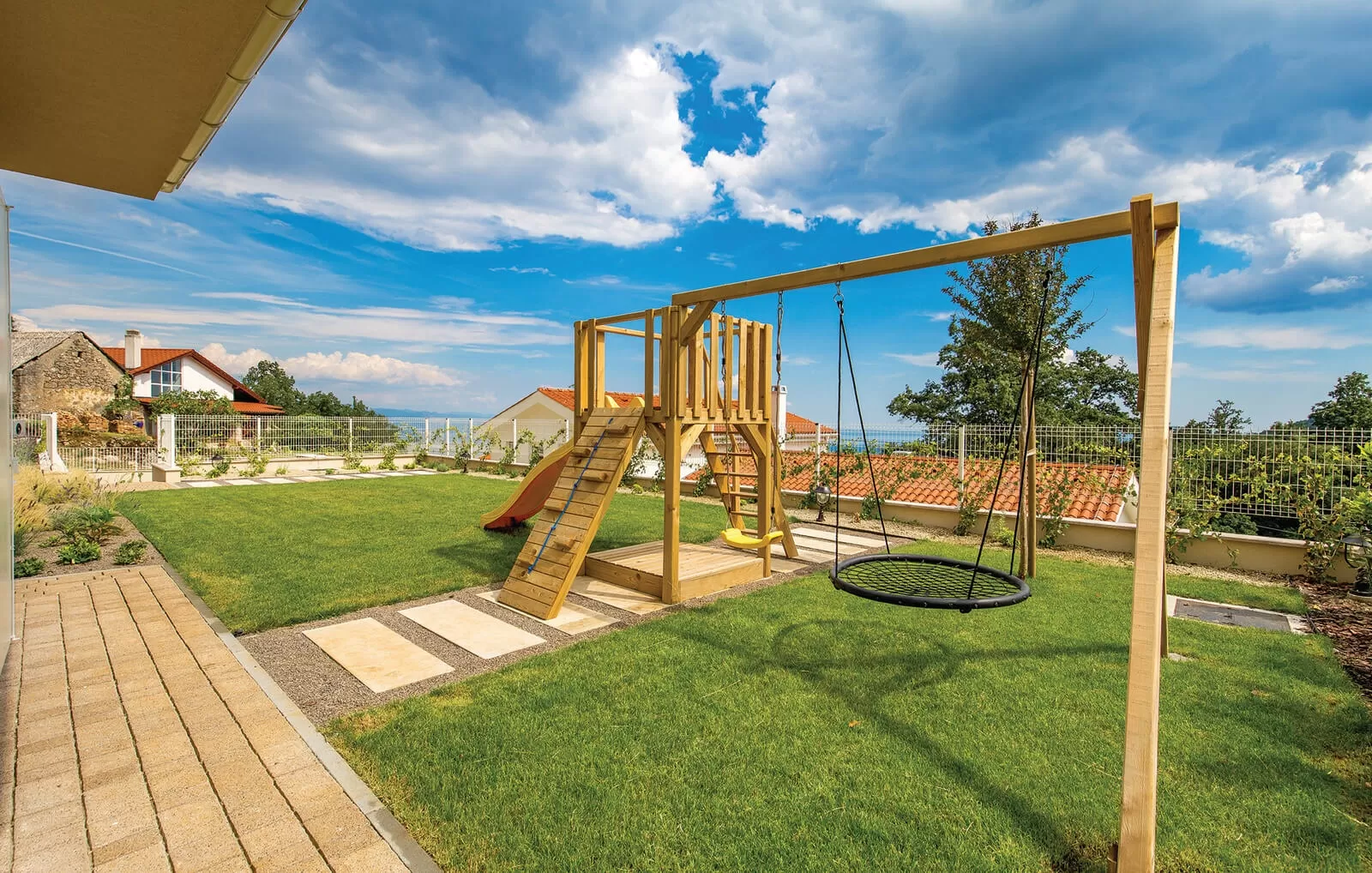 Villa Natura IV ist eine luxuriöse Villa mit einer Fläche von 400 Quadratmetern auf einem komplett eingezäunten Grundstück von fast 1200 Quadratmetern. Auf dem großen Gelände befindet sich ein von Sonnenliegen umgebener Swimmingpool, der einen wunderbaren Panoramablick bietet. Während Sie es sich im Pool gut gehen lassen, können die Kinder unbeschwert auf dem Kinderspielplatz direkt neben dem Pool spielen. Vor der Villa gibt es eine grosse überdachte Terrasse mit Grill auf dem Sie Ihre Lieblingsspeisen zubereiten können, ein grosser Esstisch und Liegestühle zum Entspannen. Die Villa Natura IV bietet ihren Gästen zusätzliche Einrichtungen wie Sauna und Fitnessgeräte für Gäste, die einen aktiven Urlaub suchen. Die Villa verfügt über ein geräumiges Wohnzimmer, das mit einer voll ausgestatteten Küche verbunden ist. Es bietet bequem Platz für 10 Gäste in 5 Schlafzimmern. Jedes Schlafzimmer verfügt über ein Kingsize-Bett, ein eigenes Bad, eine Klimaanlage und einen Fernseher.