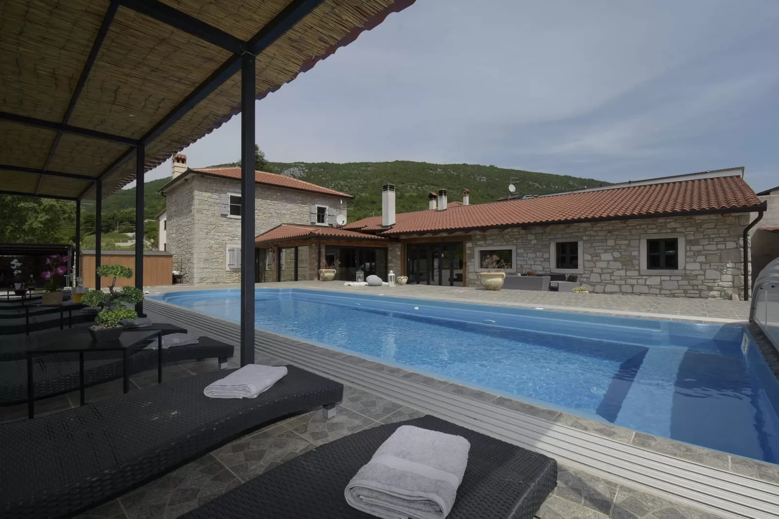 Natürlicher Morgenduft und Vogelgezwitscher begrüßen Sie, während Sie Ihren Morgenkaffee und Ihr Frühstück vorbereiten. Der Pool mit Liegestühlen lädt zum Schwimmen und Sonnenbaden ein. Veranstalten Sie gemeinsame Treffen im Innenhof, atmen Sie den Duft der Natur ein und lassen Sie sich von der wunderbaren Atmosphäre verzaubern. Tischtennis, Badminton und Billard sorgen für Unterhaltung während Ihrer Erholung und bereichern Ihre Gesellschaft. In den späten Stunden können Sie ein köstliches Grillfest vorbereiten, im Freien entspannen oder ein Picknick organisieren und traditionelle istrische Speisen probieren. Der Blick auf die Sterne, lokale Weine und Köstlichkeiten werden in Ihrer Erinnerung bleiben.