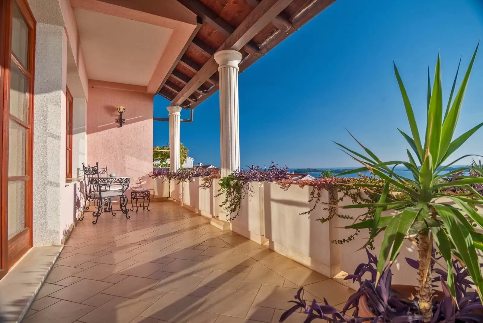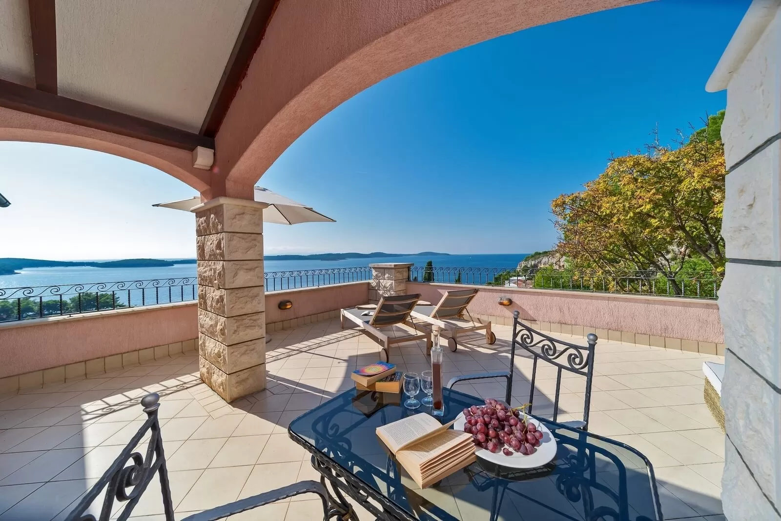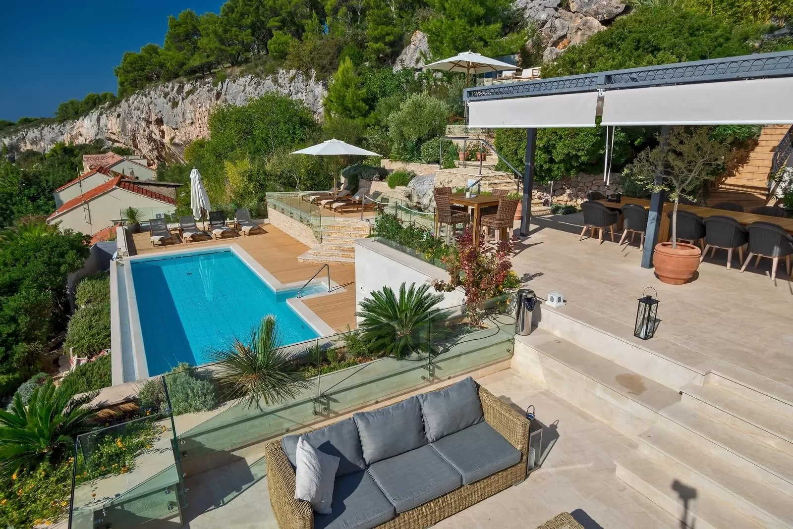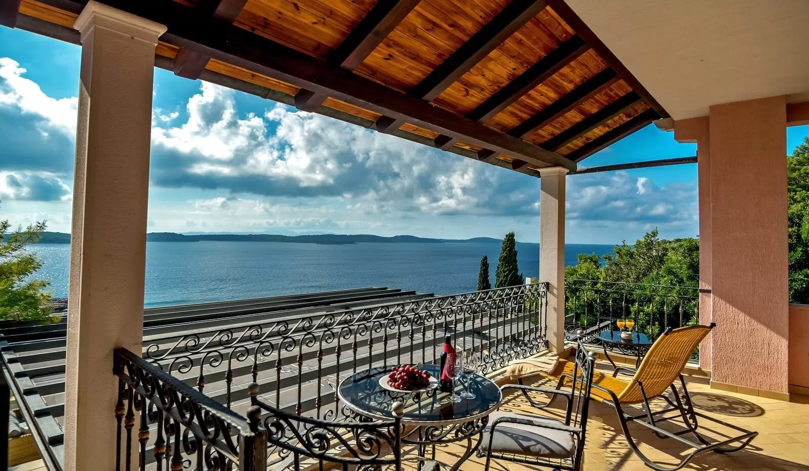 This luxurious villa has an area of 405 square meters, 7 bedrooms and can accommodate 14 people. The bedrooms are spacious and modernly furnished, and each of them has a king-size bed, ensuite bathroom and air conditioning, and most rooms have access to the terrace. A large equipped kitchen and dining room are a great choice for enjoying food with the family. For carefree morning awakenings, Villa Aida offers its guests breakfast, which is included in the price, to make the family vacation unforgettable and relaxed. Spending time together on the terrace with the barbecue offered by the villa will make your atmosphere unforgettable. The living room is spacious and offers guests a stunning panoramic view of the sea, and it opens onto a large terrace that is ideal for watching unforgettable sunsets. The interior of the villa is luxuriously furnished, dominated by warm colors and wooden furniture. The entire surroundings of Villa Aida are beautifully landscaped with numerous greenery and trees that provide fresh air and natural shade during hot summer days. In order for you to feel completely carefree on your vacation and to make all your wishes come true, the villa also offers a concierge service. Villa Aida is a truly unique luxury holiday villa that will meet all the expectations of its guests.