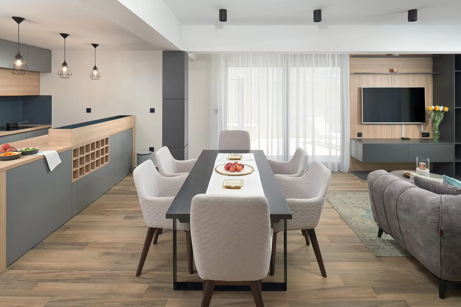 Located on the Makarska Riviera, the luxurious Villa Banessa I attracts many guests with its modern appearance and refined design. A magical panoramic view, fresh sea air and privacy are all you need for your ideal vacation. The terrace next to the beautiful swimming pool will relax you during your vacation, and the deckchairs are ready for you to sunbathe and soak up the sun's rays while reading your favorite book. Have your favorite morning coffee or prepare breakfast on the terrace with a wonderful view of the sea or just let yourself enjoy the sun and good time on comfortable chairs. Complete your daily routine by preparing your favorite grilled food, enjoying the Mediterranean air and sea ambience. With a wonderful view in the evening and sunset, drink your favorite glass of wine or refresh yourself in the beautiful pool. The entire property of the villa is completely fenced, which ensures guests a certain privacy, and there is a parking space in front of the villa.