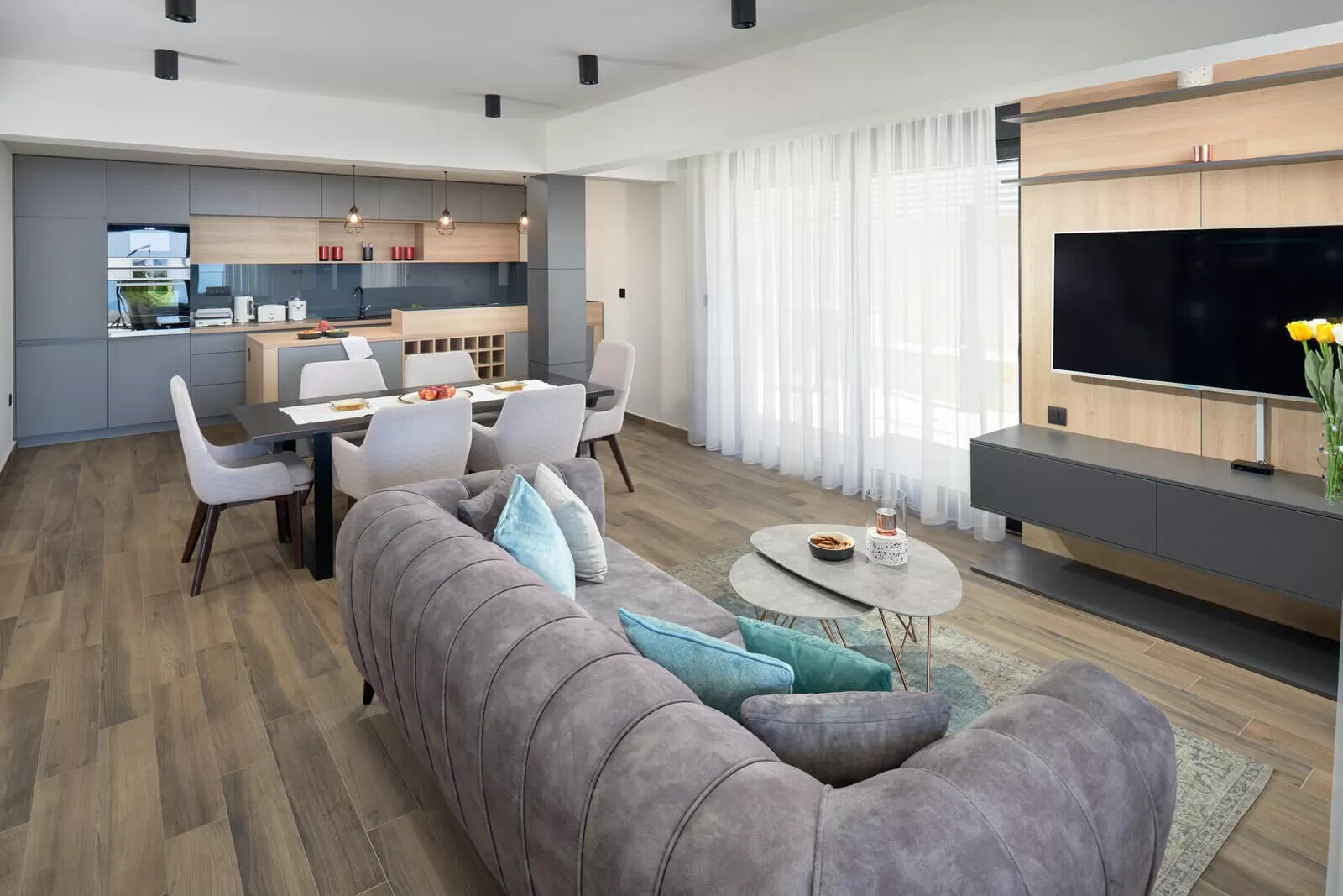 The luxurious Villa Banessa I with an area of 250 square meters has 3 modernly furnished bedrooms. All 3 bedrooms have a king size bed, ensuite bathroom, air conditioning, TV and access to the terrace. A fully equipped kitchen with modern furniture and a dining area will be useful for preparing food and having a great time. To escape from the strong summer sun and hellish heat, take refuge in the comfortable living room and enjoy the peace and quiet. Read your favorite book or newspaper on the terrace accessible from the living room or just enjoy the sun and sea air. If you are eager to exercise, Villa Banessa also offers its guests fitness equipment for an active holiday, and after exercising relax your mind in the sauna located inside the villa. After the heat of the day, surrender to the wonderful view, relax on the deckchairs and forget about the daily worries. Villa Banessa I is located on a completely fenced property, and right next to it is the sister Villa Banessa II, which is also available for rent. In this way, the Banessa villas can accommodate up to 12 people in 6 bedrooms and are a great option for large groups.