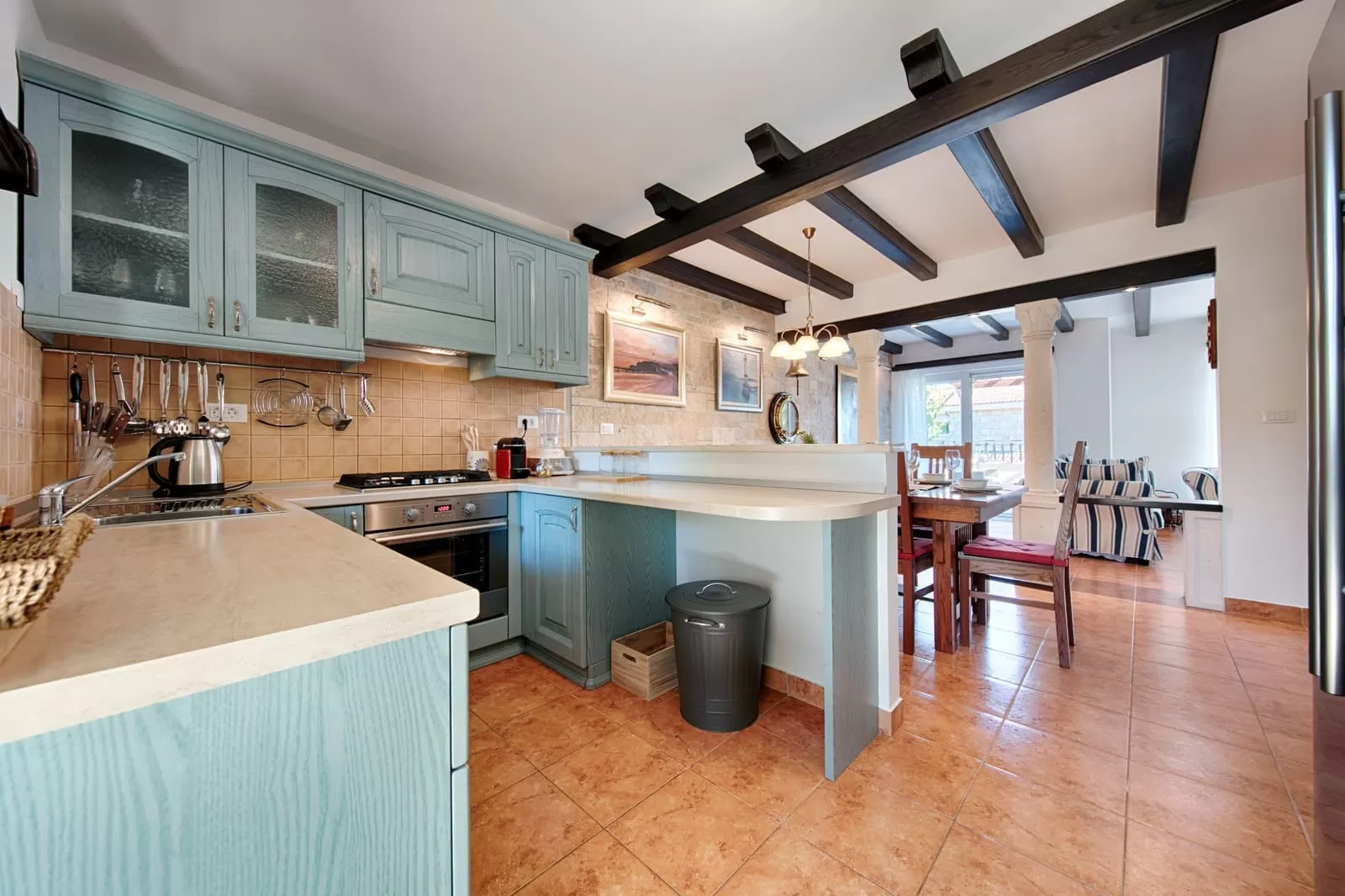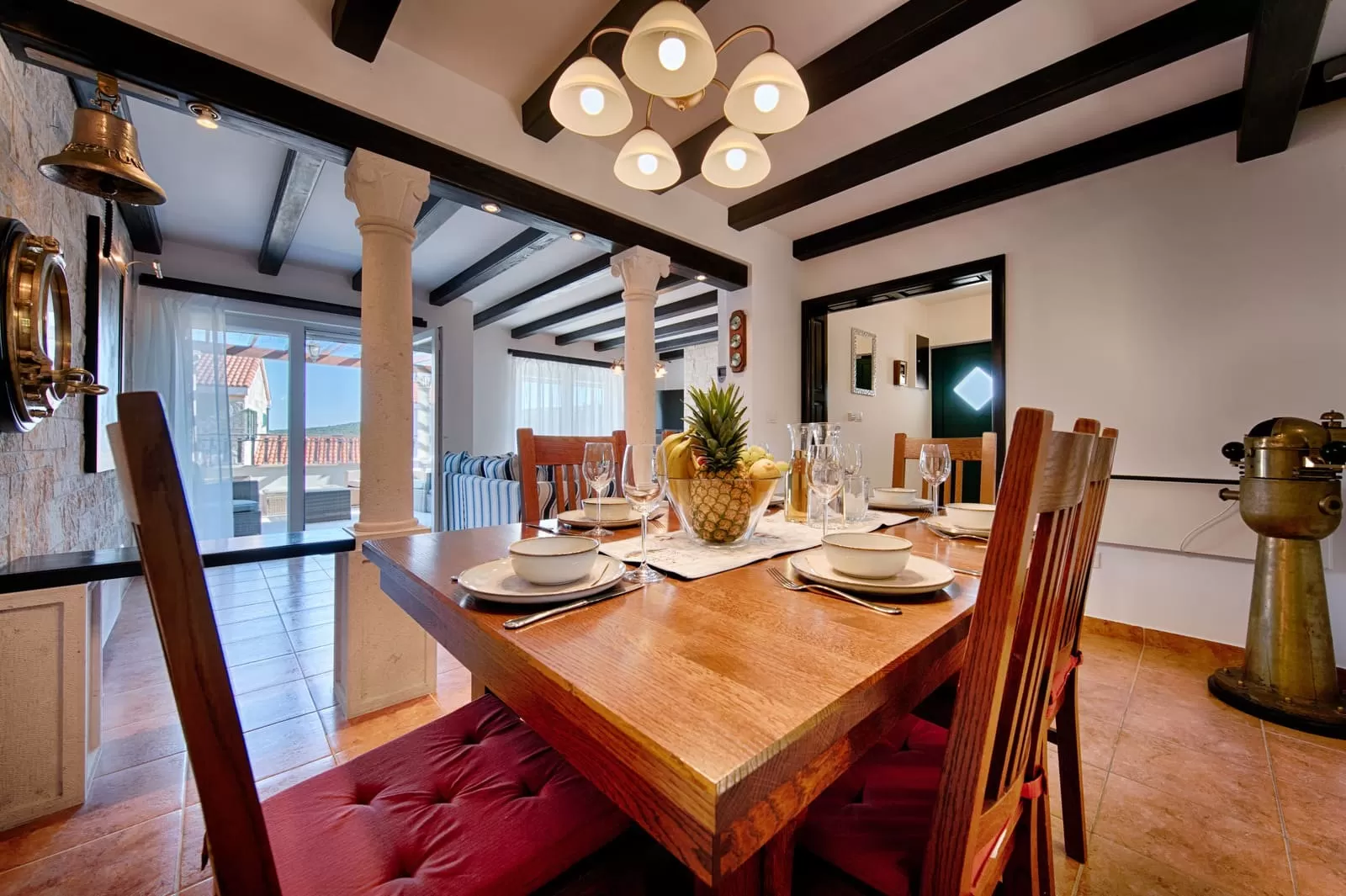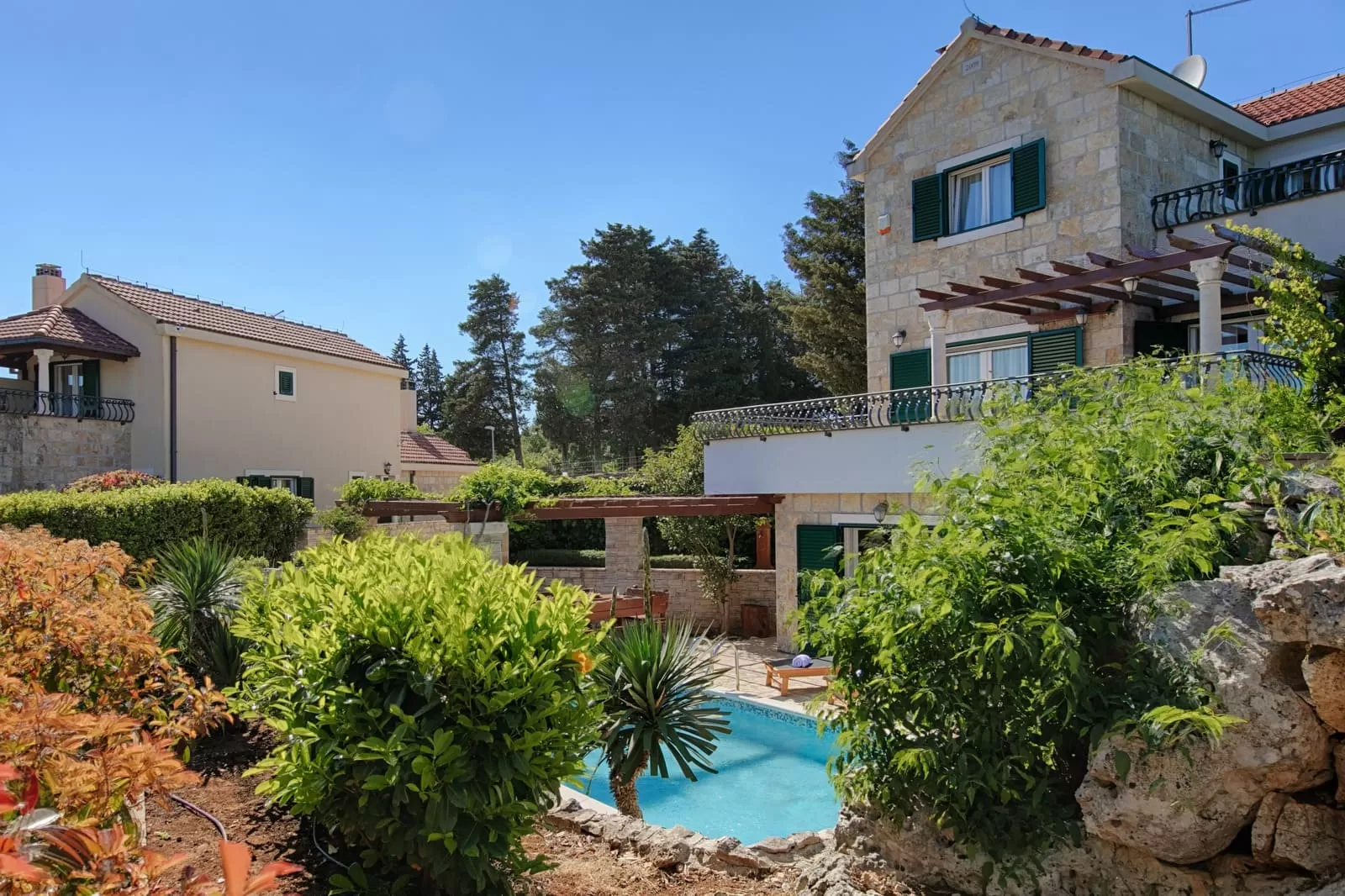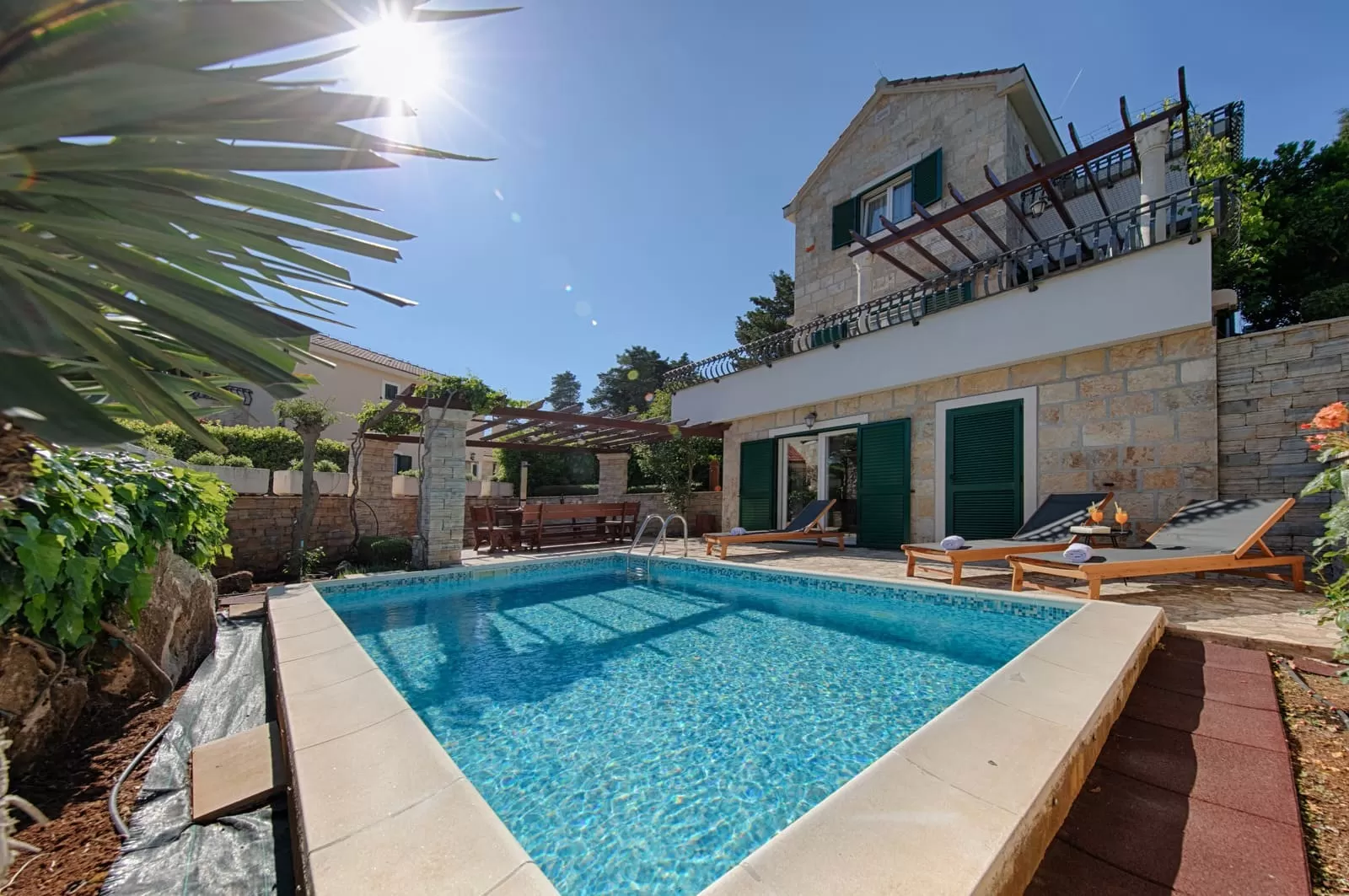 Inside our three magnificent villas lies a true family atmosphere. The elegant Dalmatian kitchen is equipped with everything you need to prepare small “travel” bites to take to the beach or lavish Mediterranean dinners to share at the outdoor dining table, exchanging impressions after a fulfilled day with plenty of laughter and a bottle of old Dalmatian wine. Every piece of furniture radiates true Croatian romance, from the living room to the bedrooms, your private oases where you will dream about everything you have planned for the next day, because you are finally in a place where dreams come true. Comfortable beds with a view of the greenery and peace will take you into the vastness of the Mediterranean, more beautiful than any photograph. Villas Demi, Luči and Anja are more than accommodation. They are a place that rejuvenates you and makes you slow down.