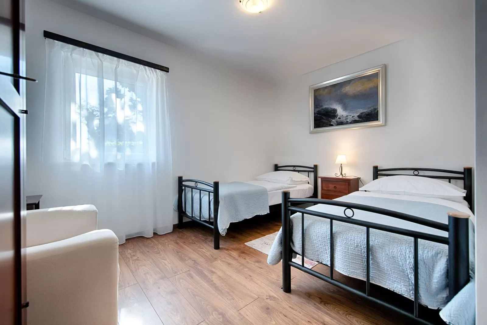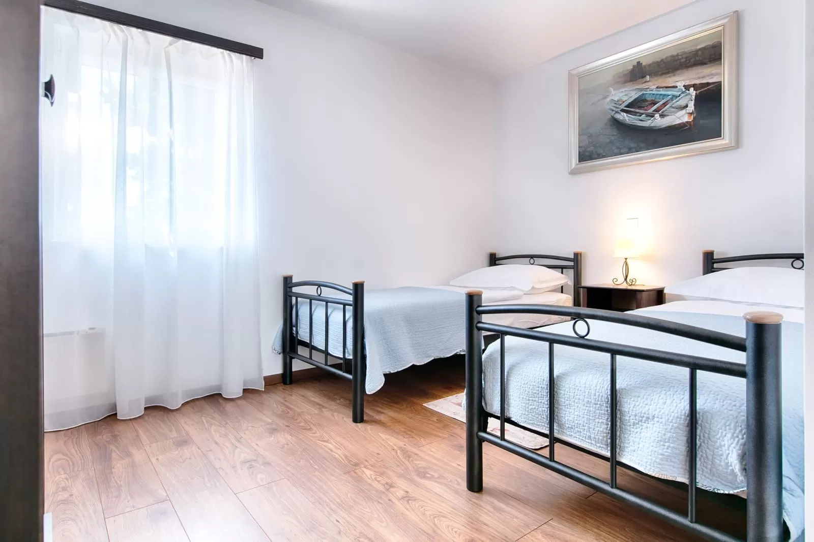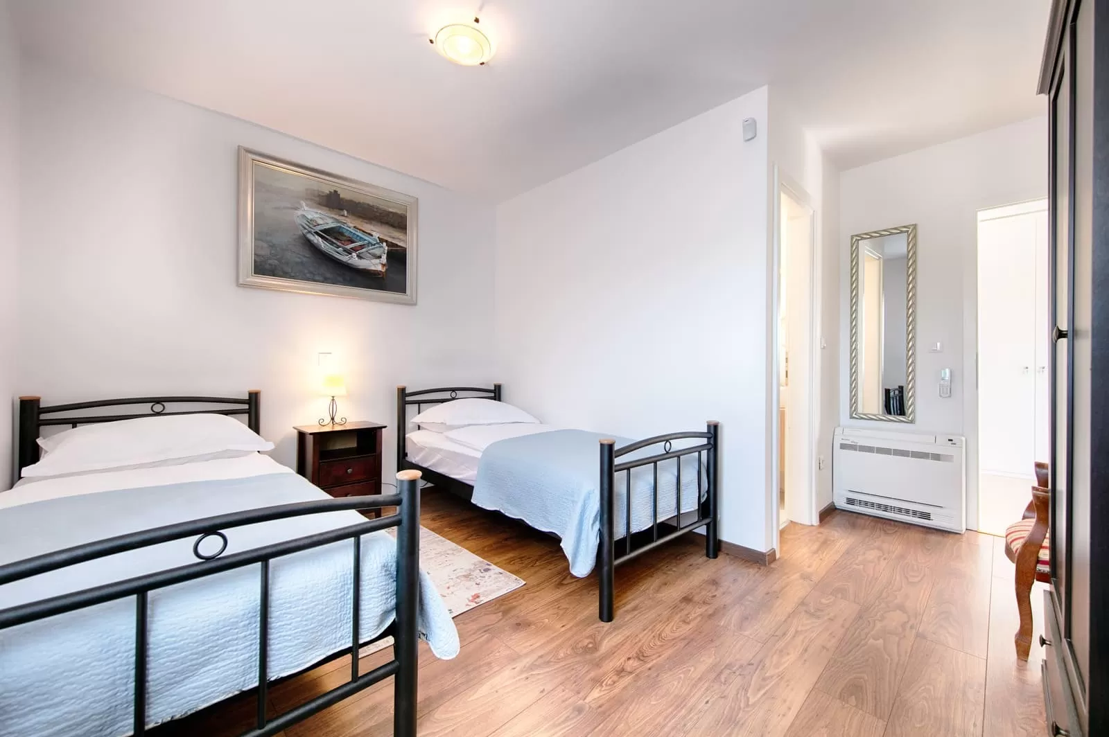 2 single beds, private bathroom, air conditioning, TV