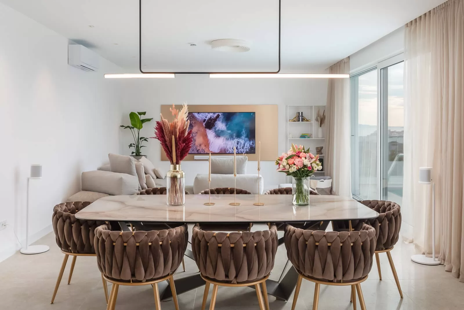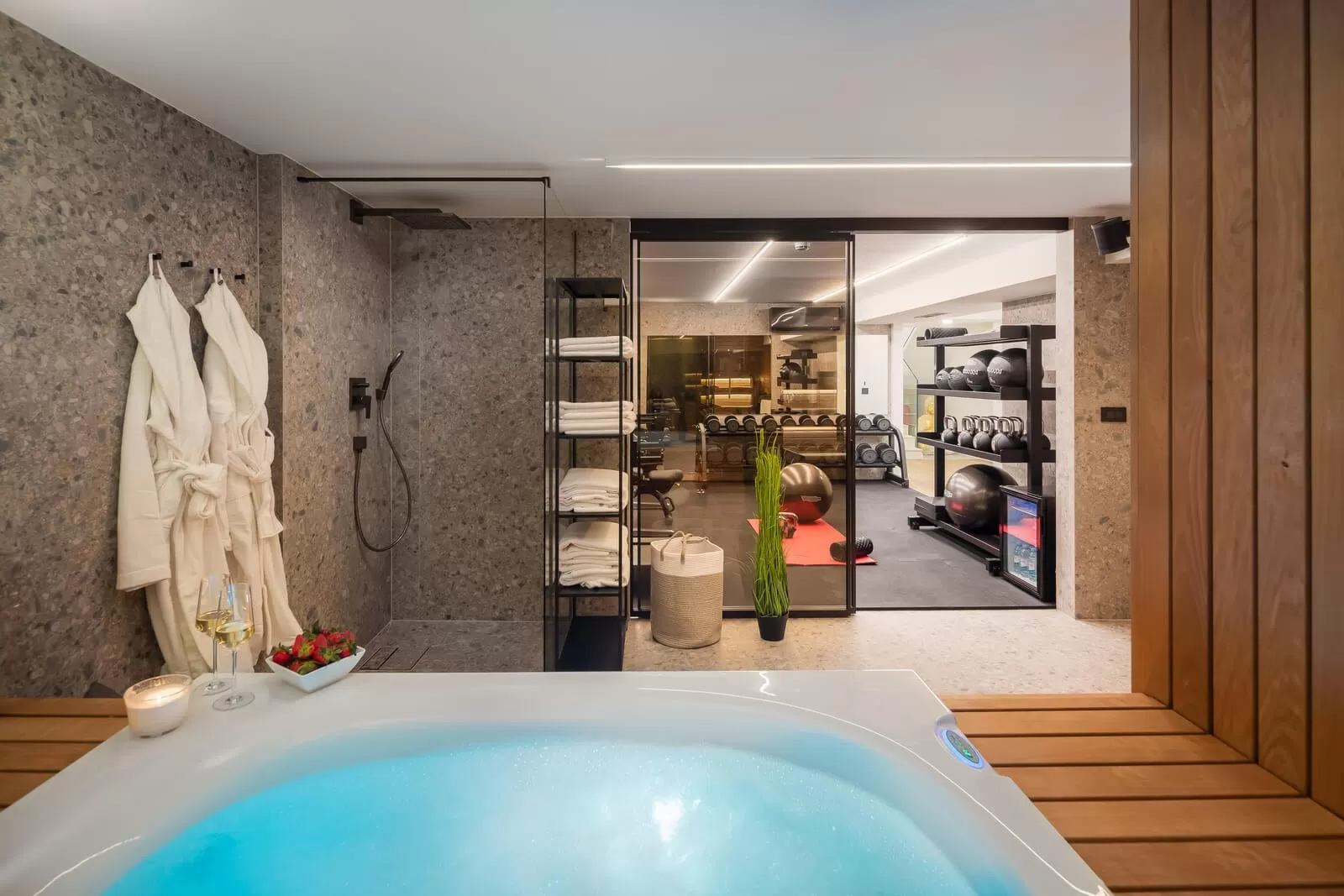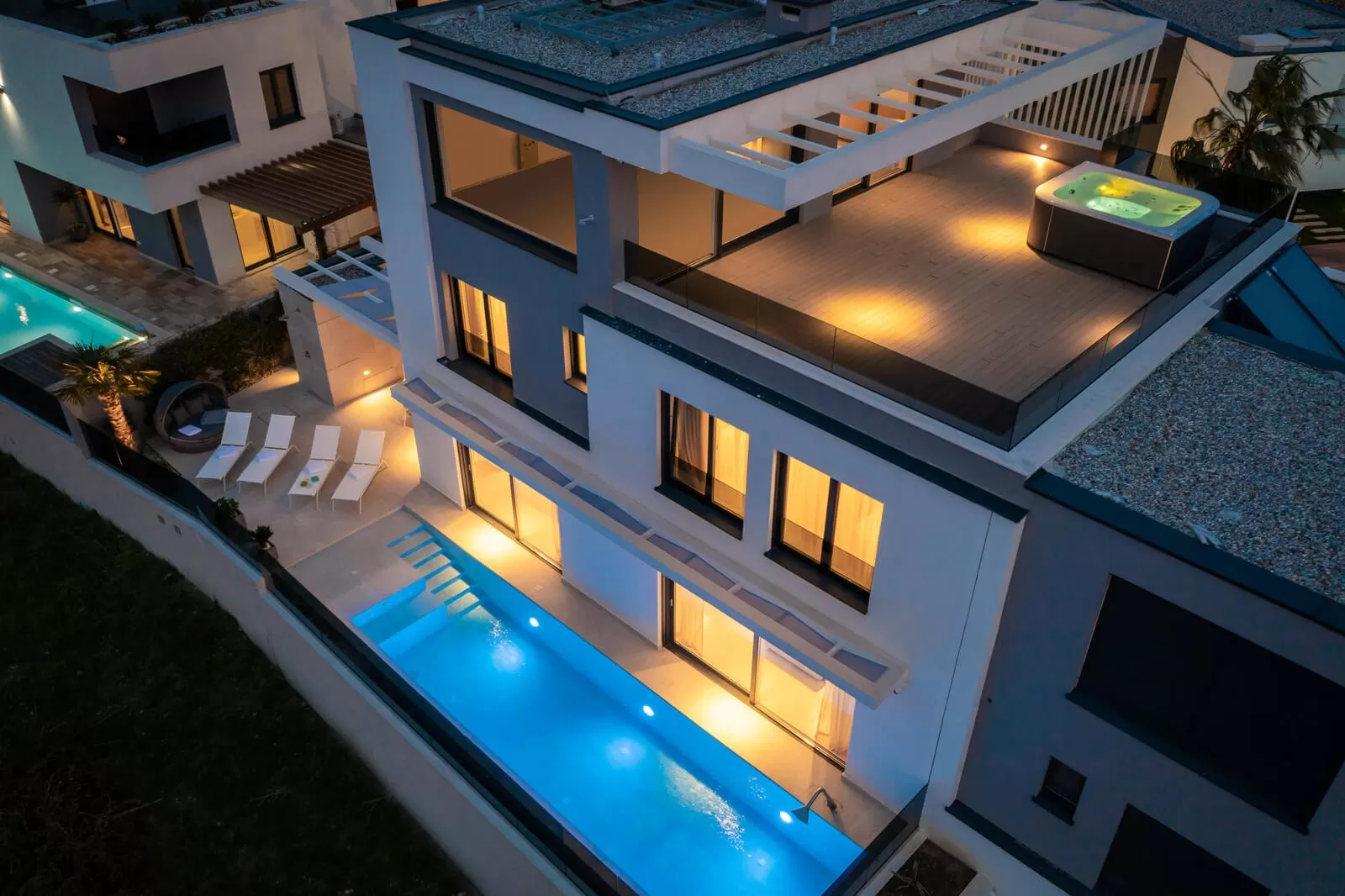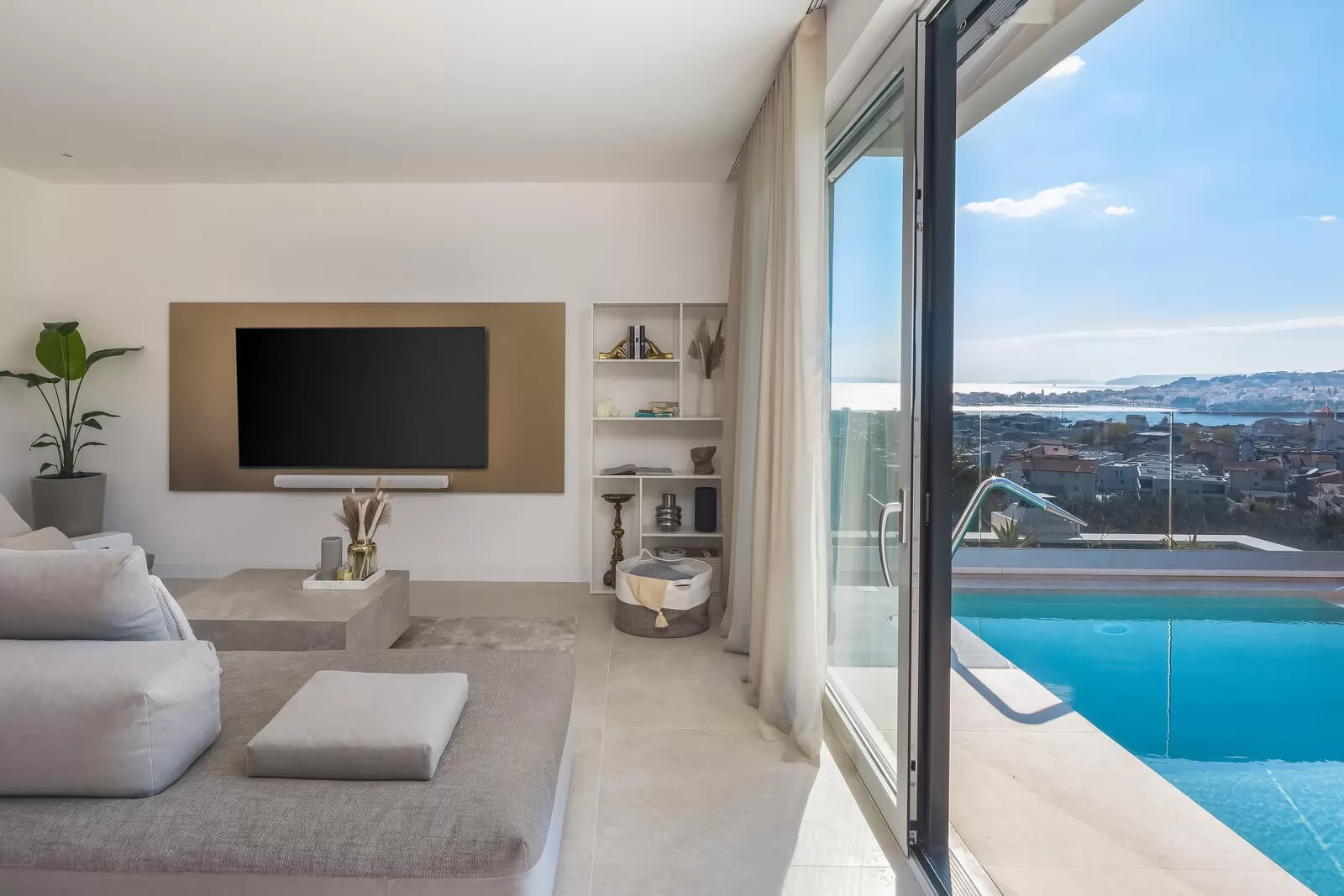 Luxurious Villa Golden Hill features 4 bedrooms with en-suite bathrooms and can accommodate 8 people. The beautifully furnished rooms exude elegance, and the luxury and modern furniture will surely captivate you during your stay. The fully equipped kitchen is great for meal preparation and connects with the dining room and living room. The living room provides a welcome retreat from hot days, and the kitchen bar invites social gatherings while tasting local wines. The kitchen leads to the outdoor terrace and pool, allowing you additional space and enjoyment. The indoor Jacuzzi is ideal for resting from stressful days, and the sauna helps relax your mind from daily worries. Sports enthusiasts will be thrilled with the fitness equipment in the villa and will make use of their time in sports activities. Villa Golden Hill includes a fully fenced property, a garage for 2 cars, parking space for 3 cars, and an electric car charger. Enjoy the pool, the sun, and the view, and take with you a touch of luxury and beauty that will remain in your wonderful memory.