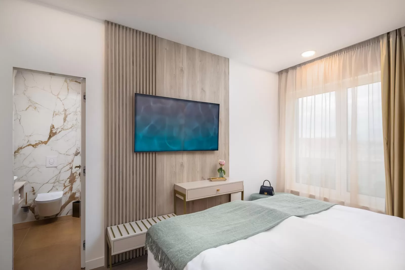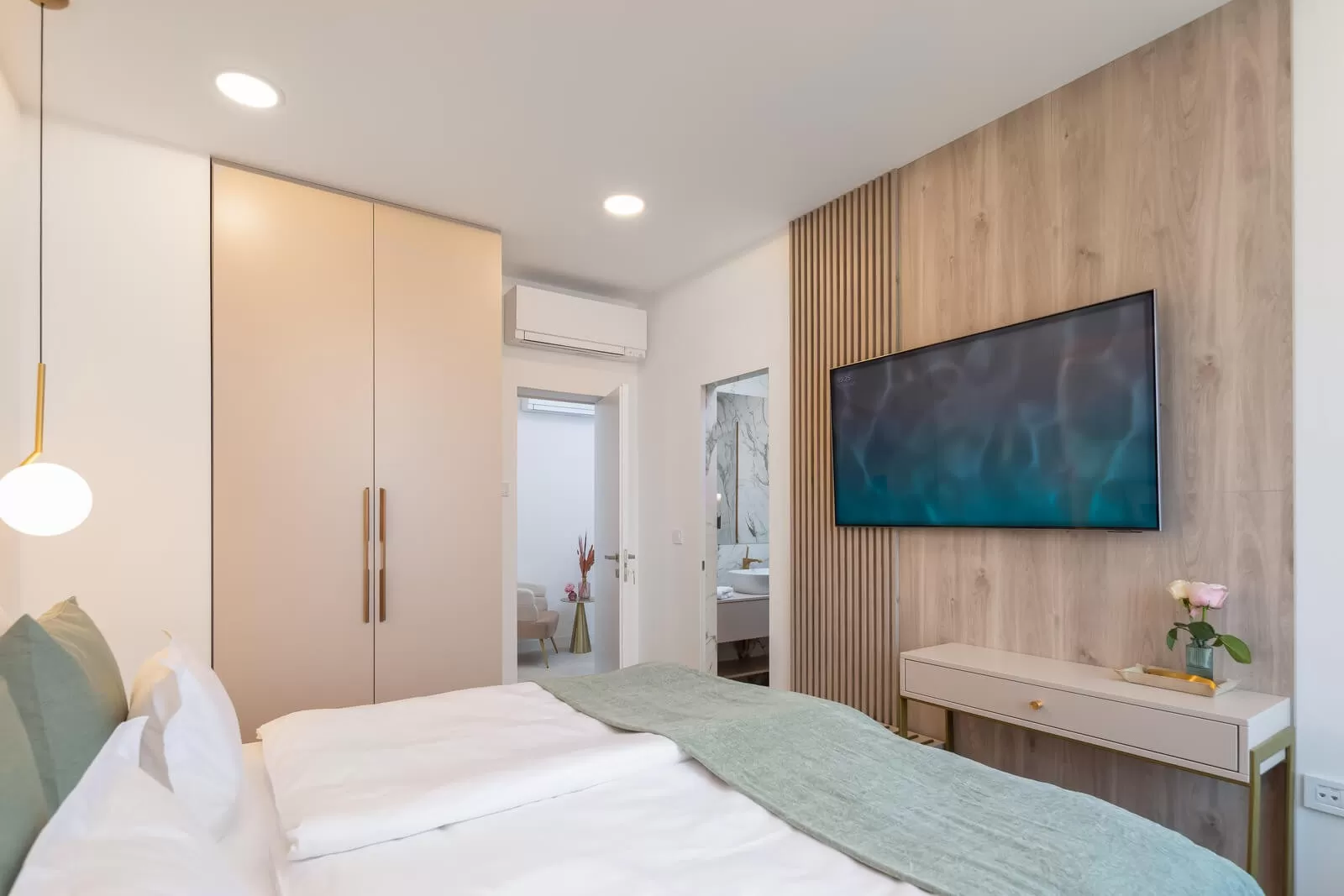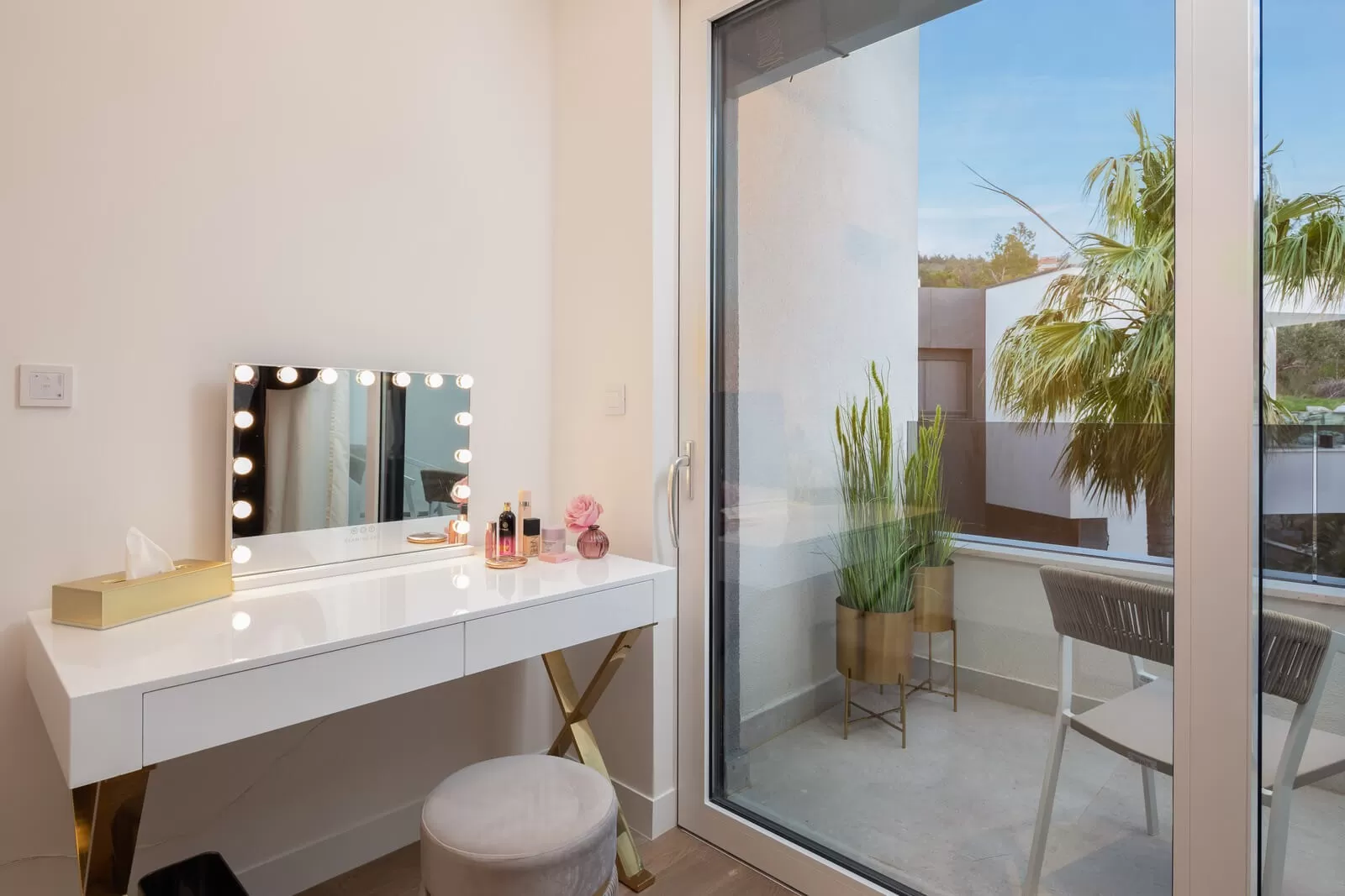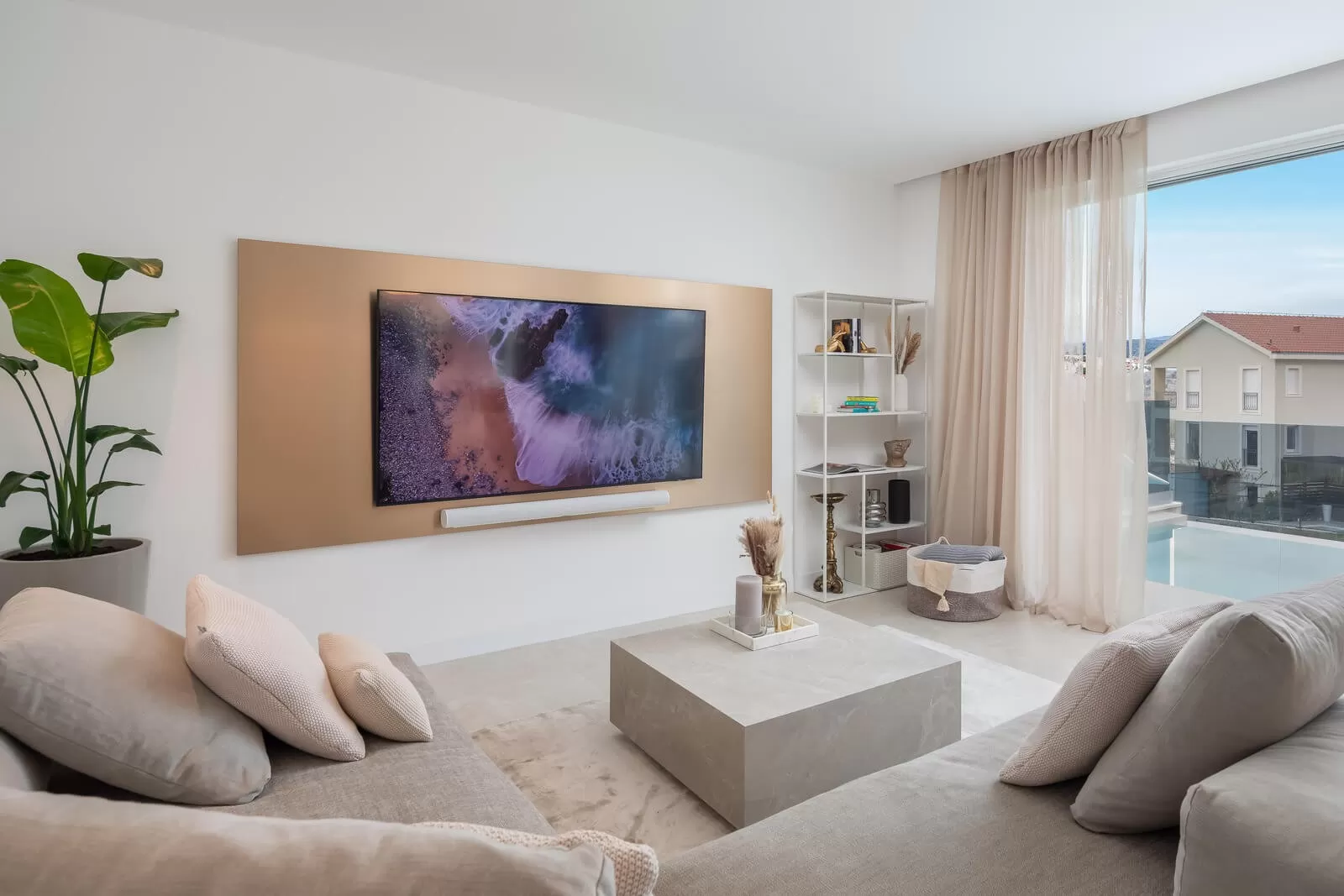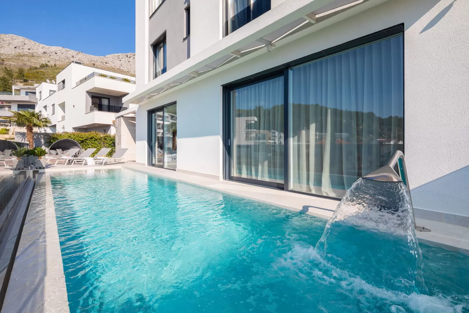 Luxurious Villa Golden Hill features 4 bedrooms with en-suite bathrooms and can accommodate 8 people. The beautifully furnished rooms exude elegance, and the luxury and modern furniture will surely captivate you during your stay. The fully equipped kitchen is great for meal preparation and connects with the dining room and living room. The living room provides a welcome retreat from hot days, and the kitchen bar invites social gatherings while tasting local wines. The kitchen leads to the outdoor terrace and pool, allowing you additional space and enjoyment. The indoor Jacuzzi is ideal for resting from stressful days, and the sauna helps relax your mind from daily worries. Sports enthusiasts will be thrilled with the fitness equipment in the villa and will make use of their time in sports activities. Villa Golden Hill includes a fully fenced property, a garage for 2 cars, parking space for 3 cars, and an electric car charger. Enjoy the pool, the sun, and the view, and take with you a touch of luxury and beauty that will remain in your wonderful memory.