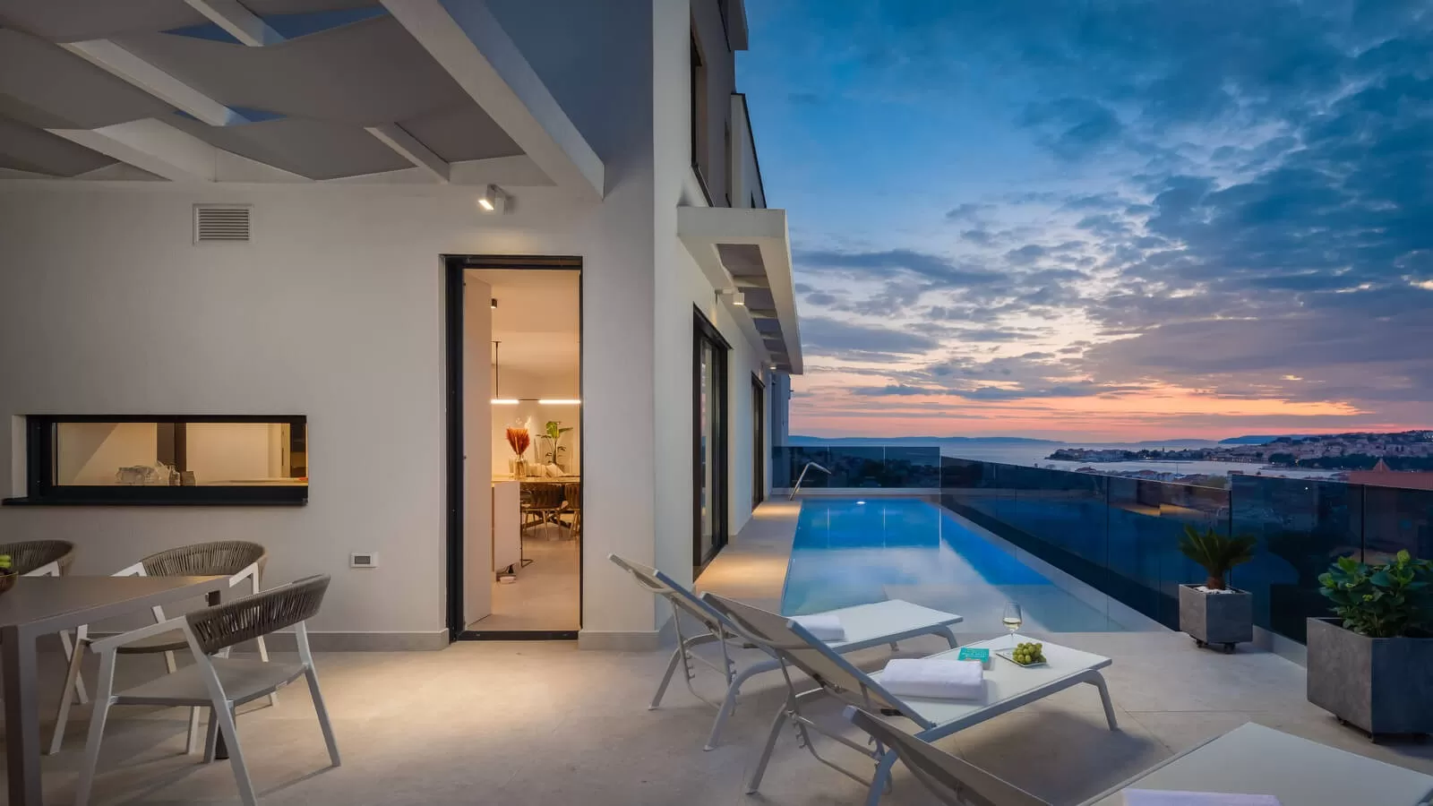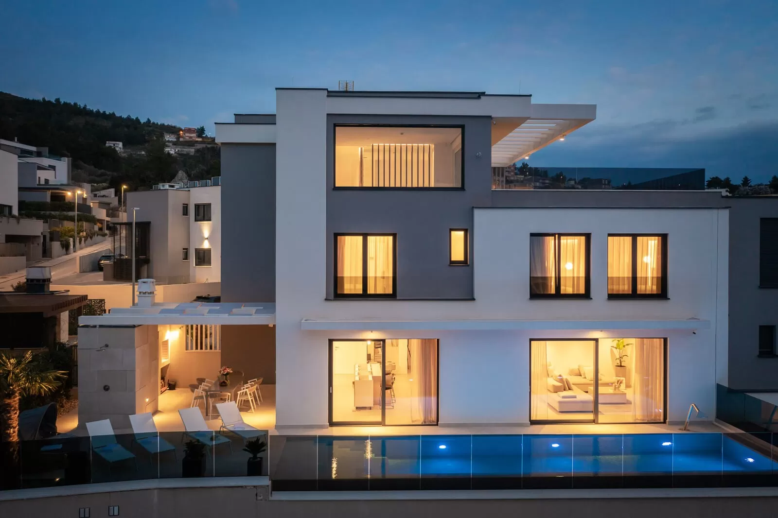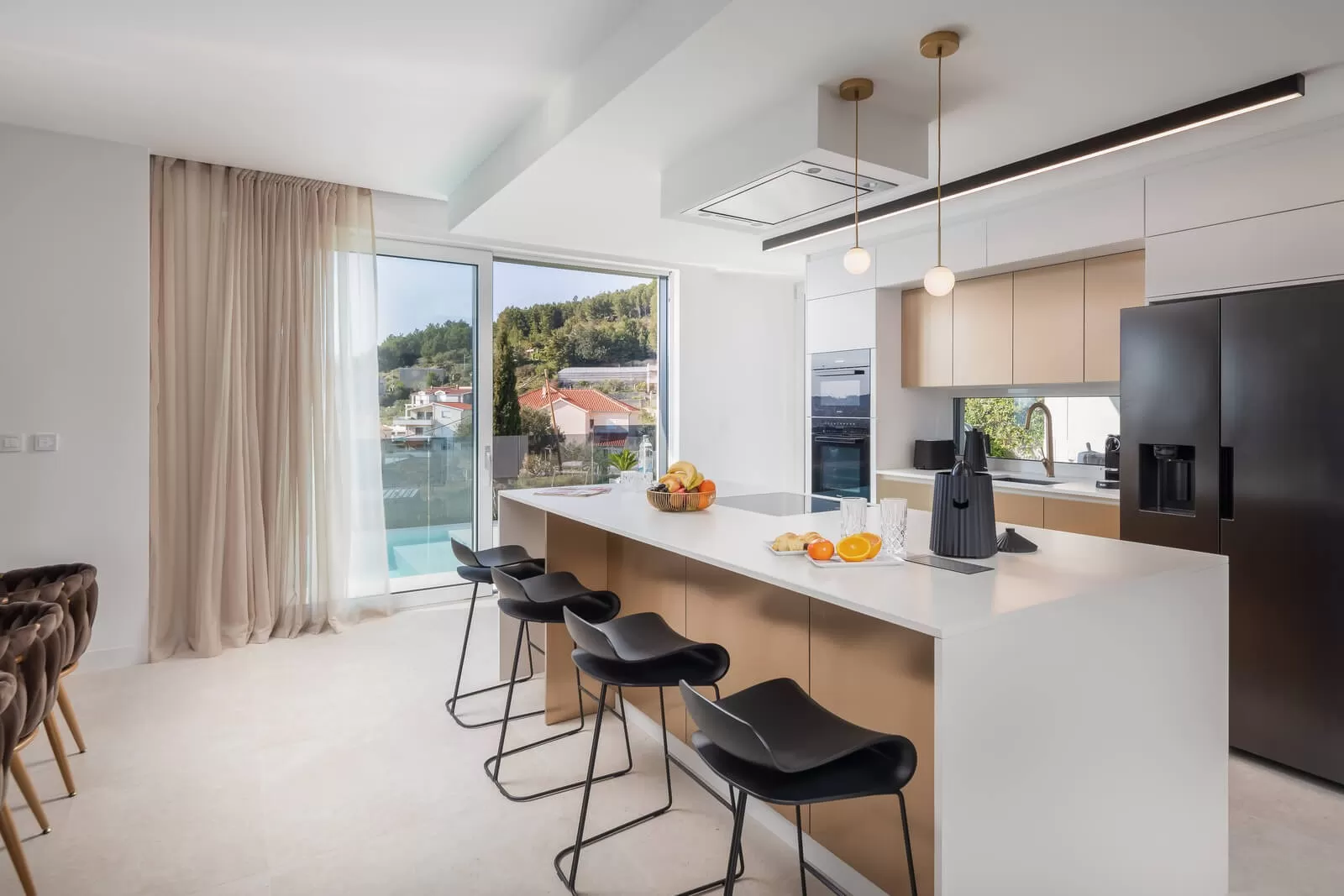 The luxurious Villa Golden Hill, with a touch of refinement and luxury, is perfect for enchanting summer days. Take a dip in the outdoor pool, sunbathe on the loungers, and enjoy the magical sea view. Organize gatherings under the covered terrace and have breakfast in the fresh sea breeze. Read newspapers while lying on the loungers or savor your favorite coffee with a wonderful city view. After the heat, prepare a delicious barbecue, taste homemade dishes, and indulge in the luxurious ambiance. Villa Golden Hill also offers a concierge service to ensure you feel completely carefree during your vacation. In the evening hours, surrender to beautiful sunsets, gaze at the stars, and contemplate the sea with local drinks or refreshing beverages.