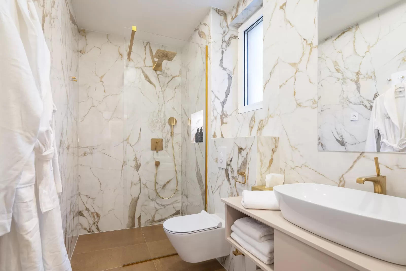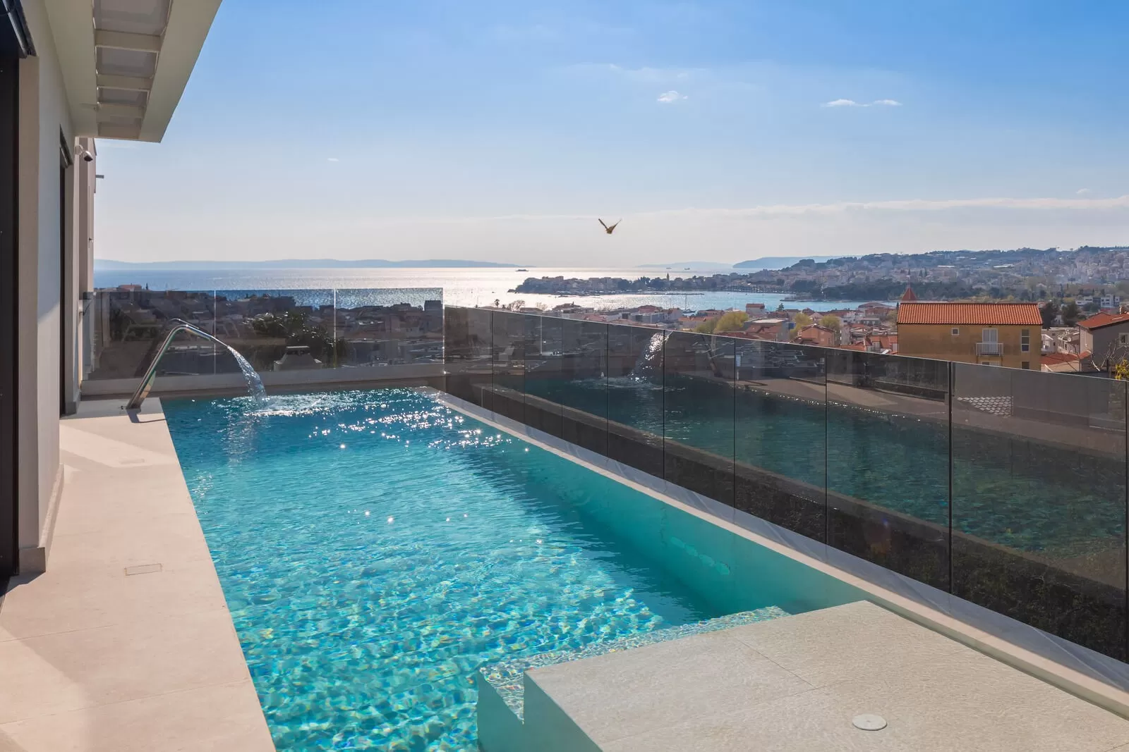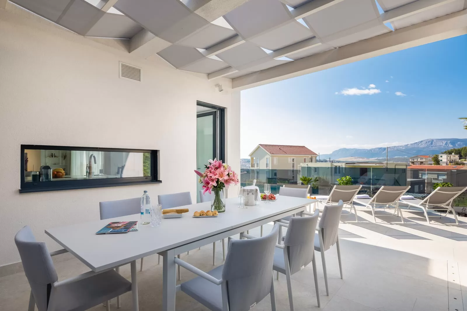 The luxurious Villa Golden Hill, with a touch of refinement and luxury, is perfect for enchanting summer days. Take a dip in the outdoor pool, sunbathe on the loungers, and enjoy the magical sea view. Organize gatherings under the covered terrace and have breakfast in the fresh sea breeze. Read newspapers while lying on the loungers or savor your favorite coffee with a wonderful city view. After the heat, prepare a delicious barbecue, taste homemade dishes, and indulge in the luxurious ambiance. Villa Golden Hill also offers a concierge service to ensure you feel completely carefree during your vacation. In the evening hours, surrender to beautiful sunsets, gaze at the stars, and contemplate the sea with local drinks or refreshing beverages.