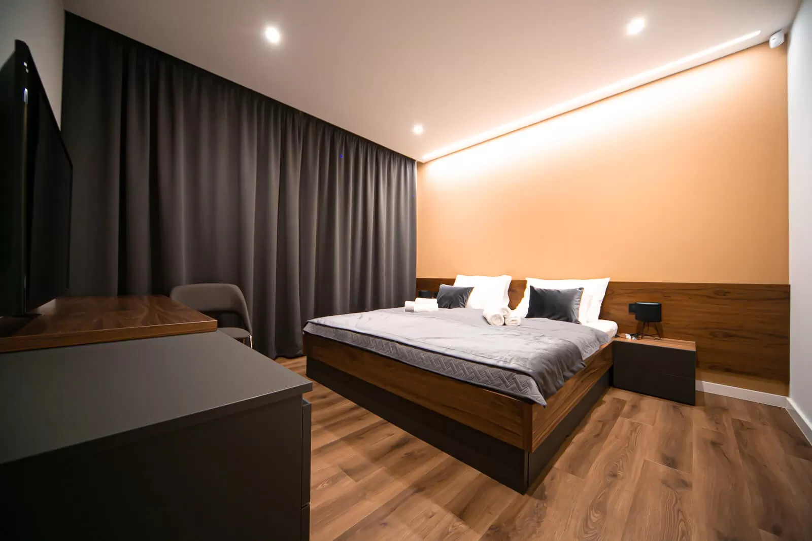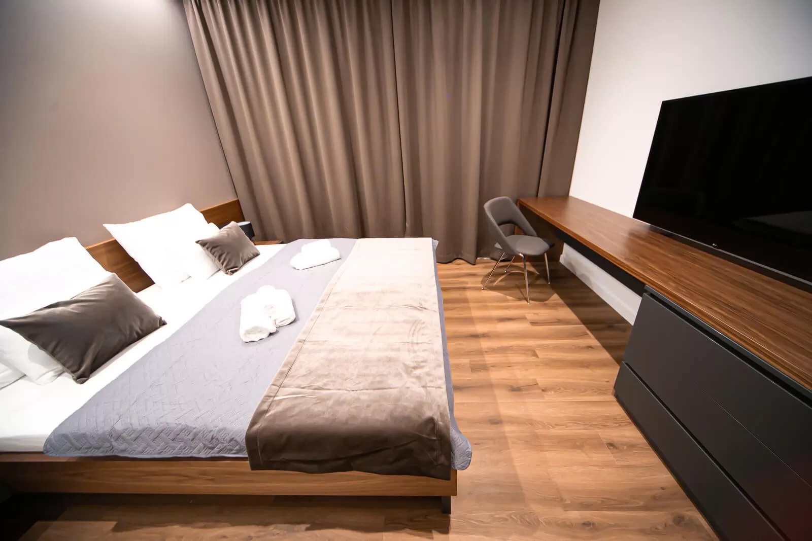 King size bed, Pull out couch, private bathroom, air conditioning, balcony, TV