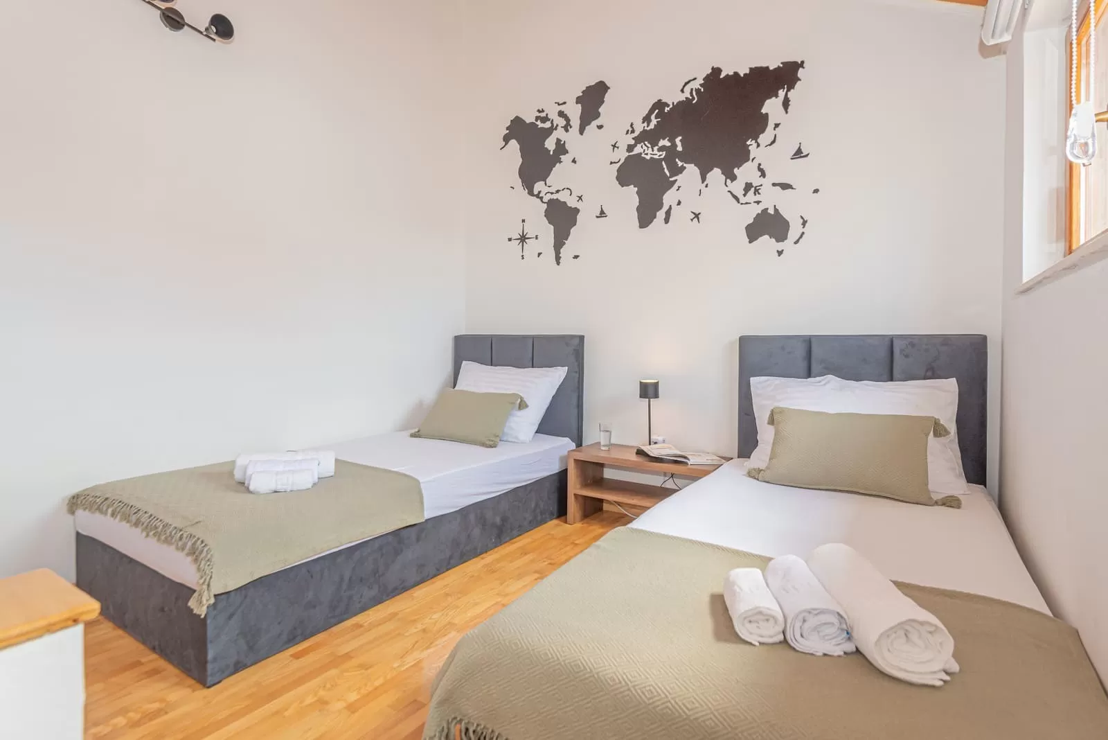 2 single beds, air conditioning, TV