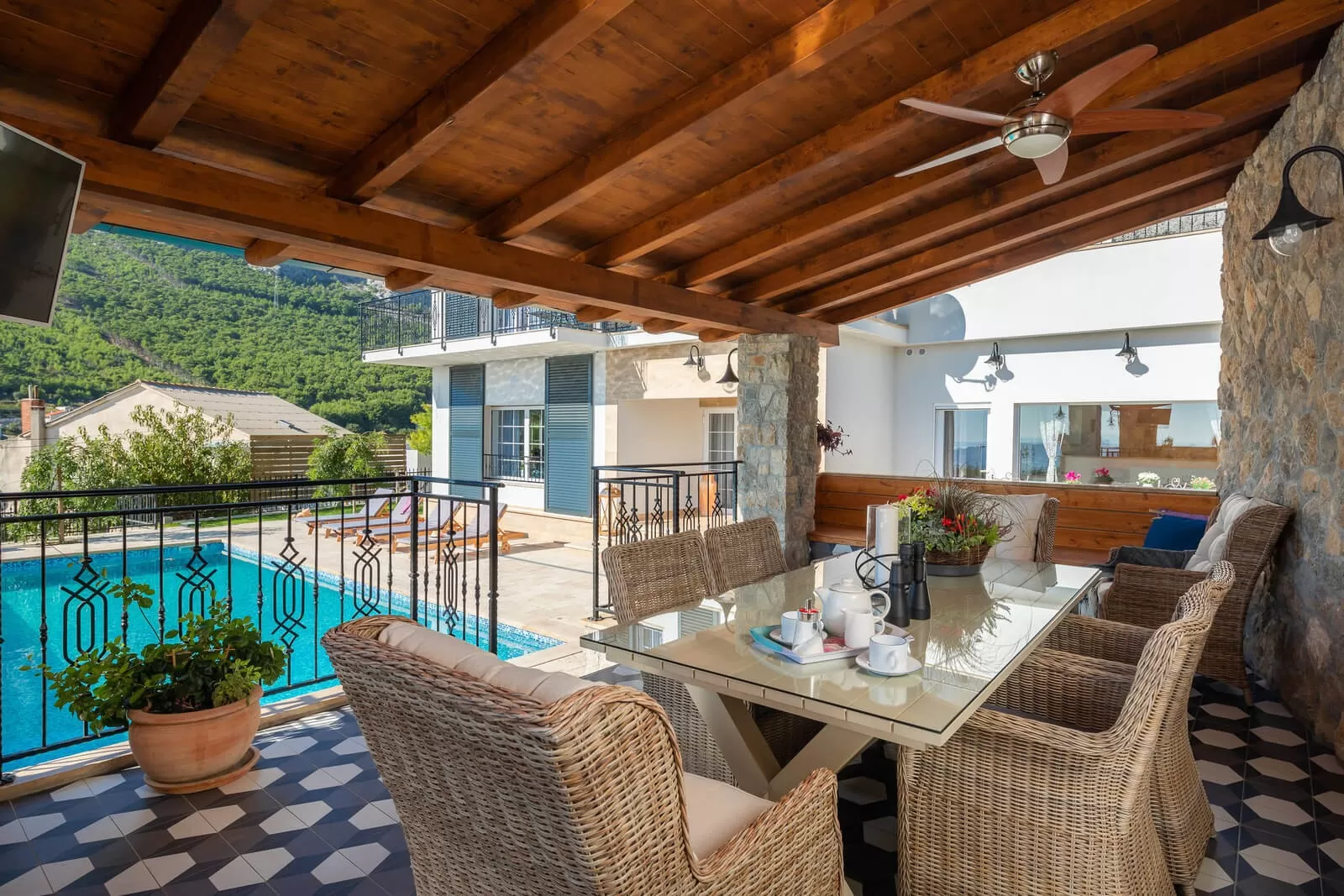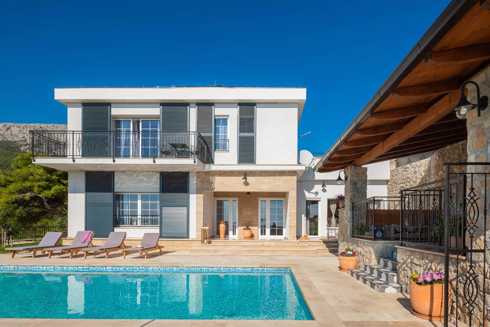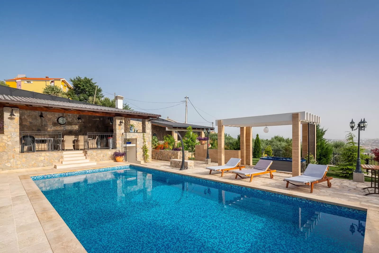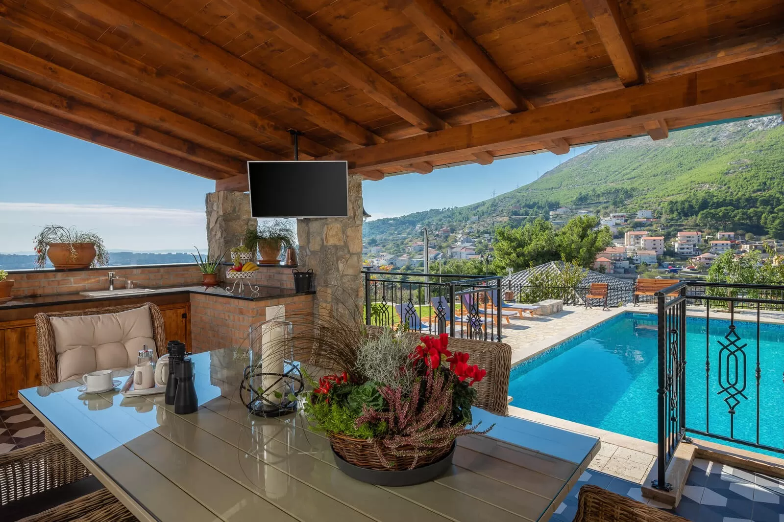 A panoramic view, swimming in the pool, and relaxing in the outdoor Jacuzzi are all you need for a dream vacation. The luxurious Villa Zvonimir with its landscaped garden will awaken the most beautiful feelings in you. Take a dip in the pool, soak up the sun rays, and organize a family breakfast on the outdoor terrace. The outdoor shower is perfect for refreshment on hot summer days, while the covered terrace offers a retreat from the strong sun. Prepare Dalmatian food and indulge in the magical view while sipping your favorite coffee. Table tennis and foosball will come in handy for afternoon gatherings in the fresh air. Villa Zvonimir offers transfer services if you decide to go on a family outing or visit the center of Split. Home-cooked food, indescribable views, a fireplace, and a glass of wine will take your mind far from the daily routine. In the nighttime, with a panoramic view, refreshment in the Jacuzzi, and night swimming in the pool, you will create beautiful memories. Luxury, pleasant climate, and stargazing are priceless.
