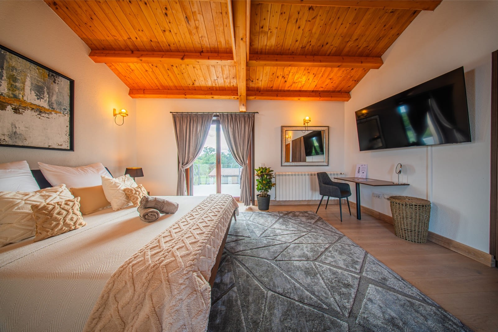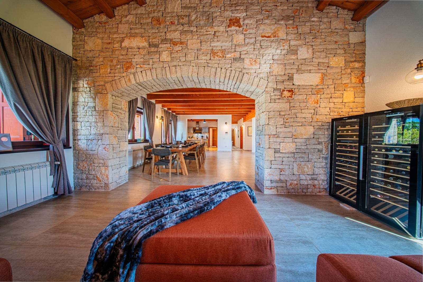 Villa Antea površine 520 metara kvadratnih i čak okućnice 5000 metara kvadratnih sadrži 4 spavaće sobe s vlastitom kupaonicom i može ugostiti maksimalno 12 osoba. Potpuno opremljena i moderna kuhinja idealna je za uživanje u zajedničkim jelima i druženju, a prostrani dnevni boravak s blagovaonicom za večernja druženja uz ukusna pića. Opustite svoj um u sauni i prepustite se mirnom i opuštajućem ambijentu. Ljubitelji igara uživat će u PlayStationu i sportskim sadržajima. U interijeru vile prevladavaju kamen, šarmantne drvene grede i moderan namještaj. Villa Antea je tako savršeni spoj rustikalnog i modernog stila, a kamin u dnevnom boravku će vam pružiti dodatni dojam topline. Okupajte se u bazenu, uživajte u čarobnim danima na svježem zraku, a u večernjim satima opustite se uz pogled na zvijezde, šum prirode i cvrkut cvrčaka. Organizirajte izlet s biciklima i istražite predivan krajolik uz male puteljke. Luksuzna Villa Antea sadrži potpuno ograđen posjed, parking za 6 automobila i garažu za 2 automobila. Villa Antea idealna je za obiteljski odmor, veće grupe gostiju i opuštanje na velikom posjedu uz brojno drveće i zelenilo.