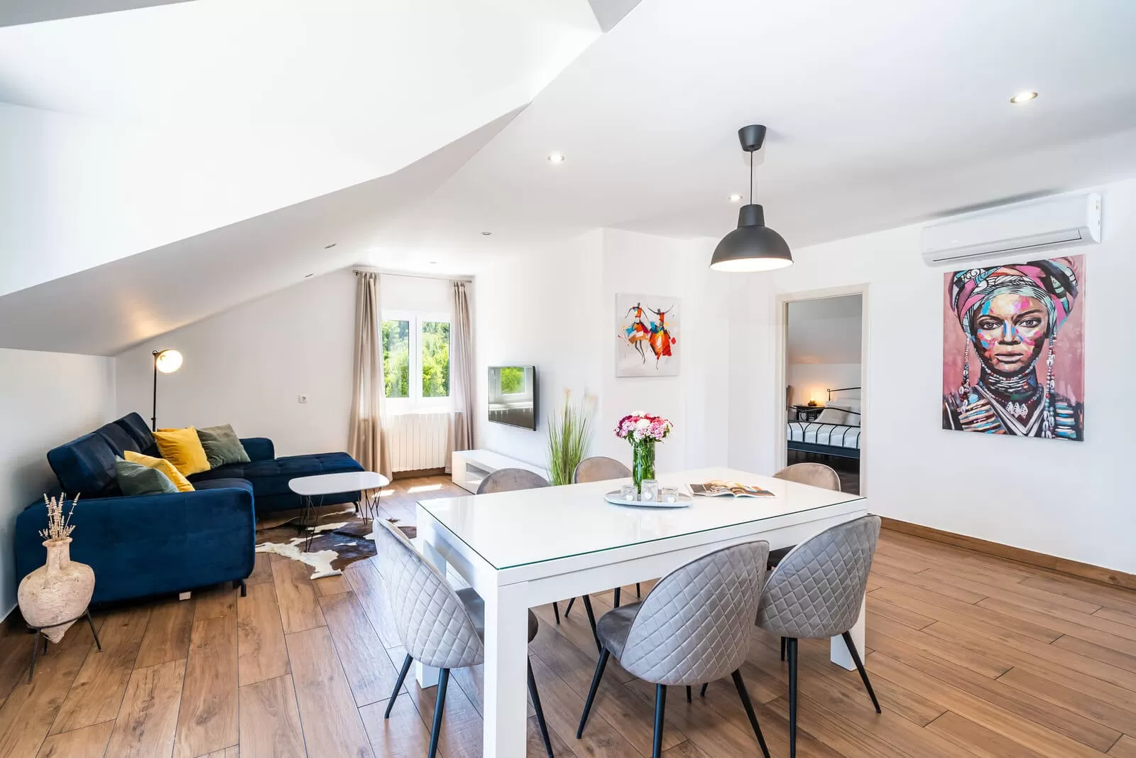 Villa Luna sadrži 3 spavaće sobe i može ukupno ugostiti 8 osoba. Moderna i opremljena kuhinja idealna je za pripremu ručka ili večere. Uz kuhinju se spaja i dnevni boravak koji će vam dobro doći za popodnevna odmaranja. Opustite svoje misli u prirodi uz šumski zrak, kupajte se u bazenu ili se samo prepustite mirnom ambijentu. Villa Luna svojim gostima nudi privatnost, potpuno ograđen posjed i parking za 6 automobila.