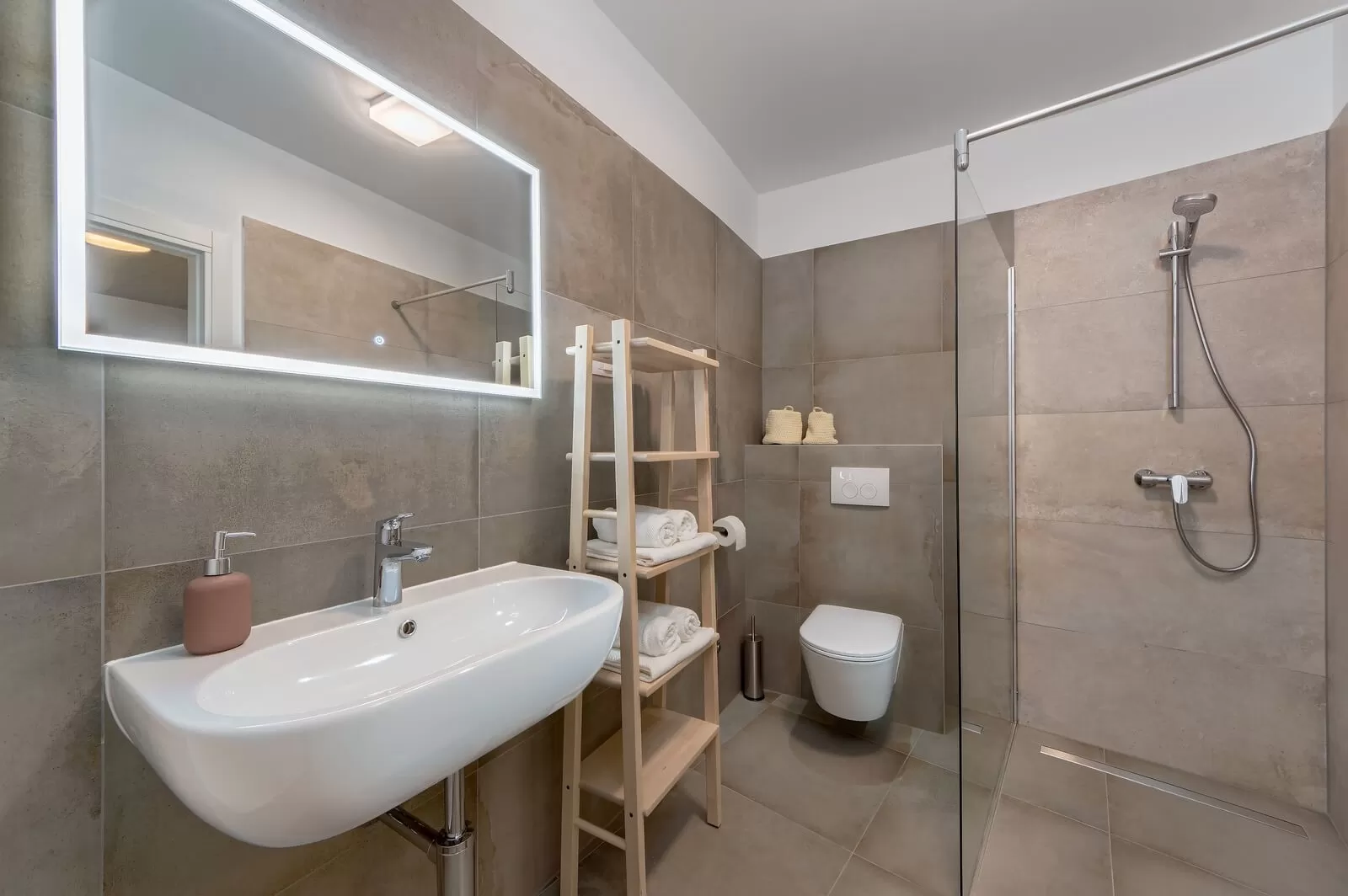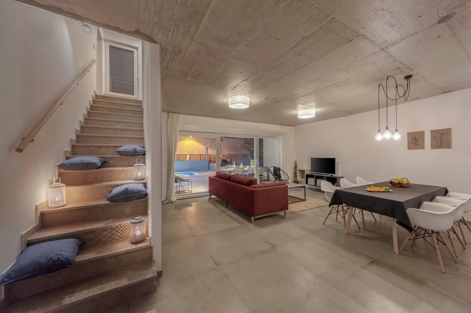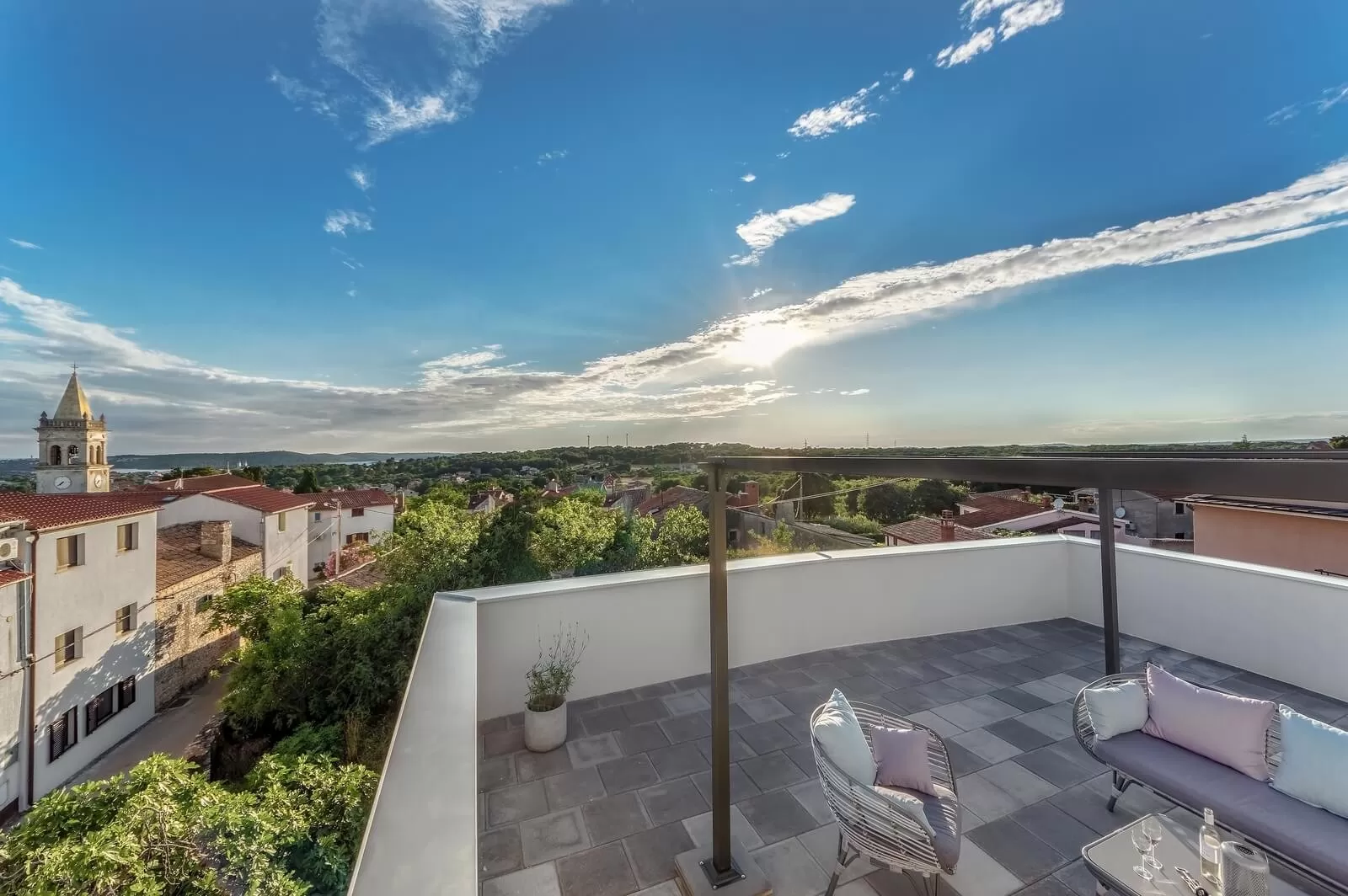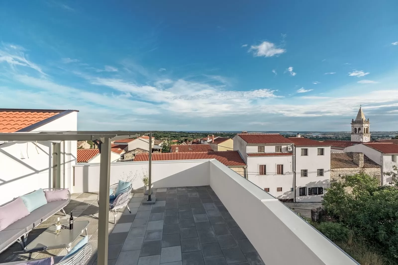Unutrašnjost Ville San oduševljava svojim modernim i jednostavnim uređenjem, stvarajući savršenu kombinaciju funkcionalnosti i estetike. Svaki detalj je pažljivo odabran kako bi se stvorila atmosfera elegancije i udobnosti. Prostrani dnevni boravak s udobnom sofom i dizajnerskim namještajem pruža idealno okruženje za opuštanje, dok veliki prozori i staklene stijene omogućuju obilje prirodnog svjetla i pružaju prekrasan pogled na okolni krajolik. Za ljubitelje tehnologije, dnevni boravak je opremljen najnovijim TV-om s pristupom streaming uslugama poput Netflixa, omogućujući vam da uživate u omiljenim filmovima i serijama. Kuhinja je opremljena vrhunskom modernom opremom, uključujući aparat za kavu, hladnjak, pećnicu, perilicu za suđe i toster, što olakšava pripremu ukusnih obroka. Blagovaonica nudi intimno okruženje za obiteljske obroke ili večernje zabave, dok velika staklena vrata vode izravno na vanjsku terasu, stvarajući savršen protok između unutarnjeg i vanjskog prostora. Na najvišoj terasi, gosti mogu uživati u spektakularnom panoramskom pogledu koji oduzima dah, idealnom za jutarnju kavu ili večernji koktel uz zalazak sunca. Vanjski prostor je pravo malo utočište, s bazenom okruženim udobnim ležaljkama koje pozivaju na sunčanje i opuštanje. Potpuno ograđen posjed jamči privatnost i sigurnost, a maleno dvorište ispunjeno sitnim kamenčićima doprinosi opuštajućoj atmosferi. Dodatne pogodnosti uključuju Wi-Fi, perilicu rublja, sušilo za kosu, roštilj i opremu za roštilj, kao i dječji krevet, osiguravajući da svi gosti imaju sve što im je potrebno za savršen odmor. S pažnjom posvećenom svakom detalju, Villa San pruža savršeno okruženje za nezaboravan odmor u srcu prekrasne Istre.