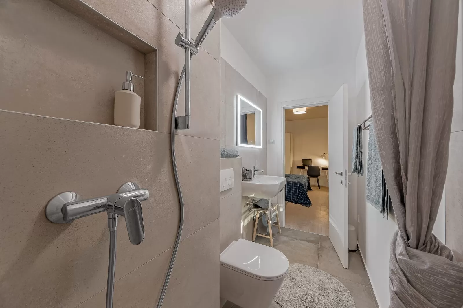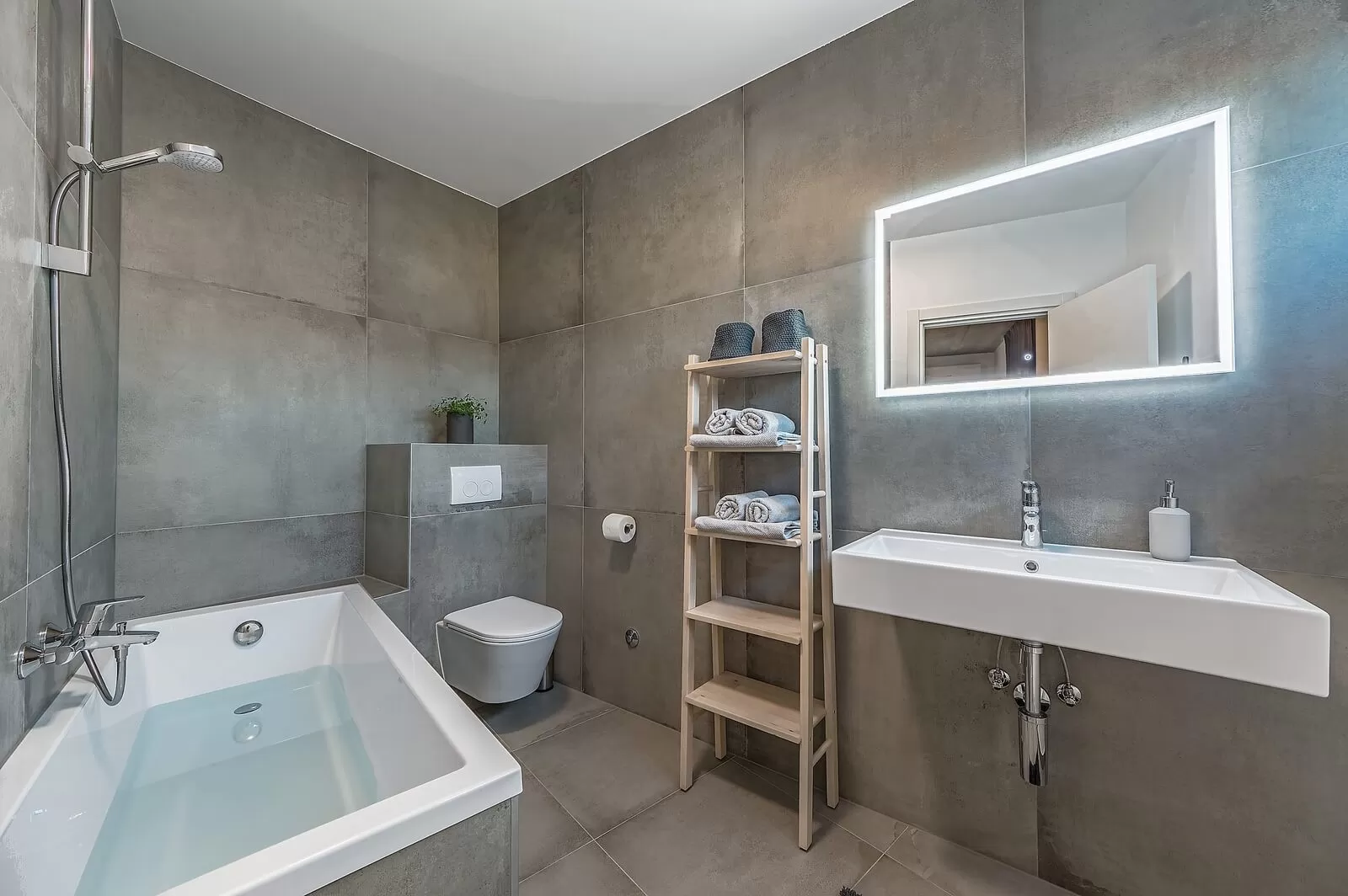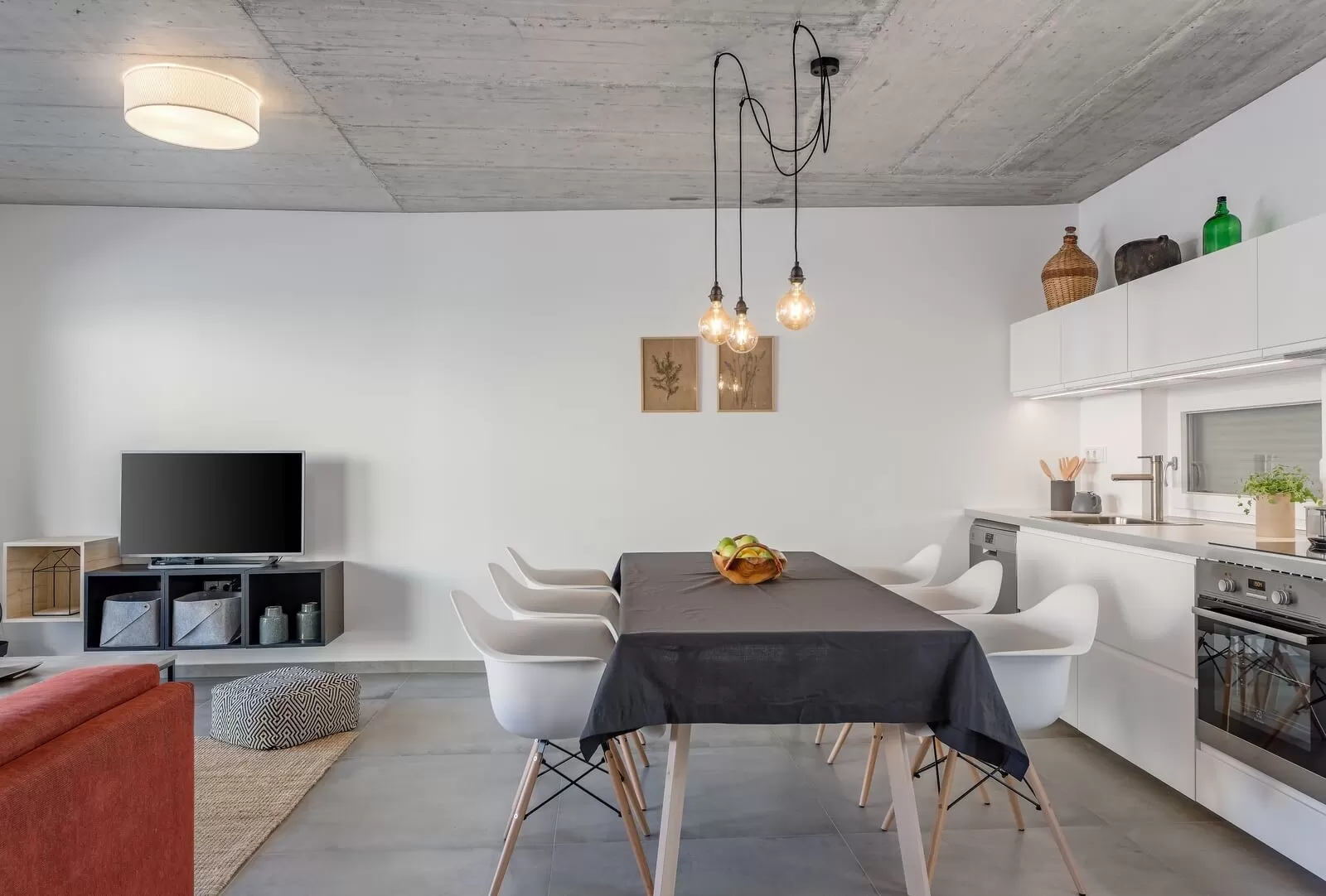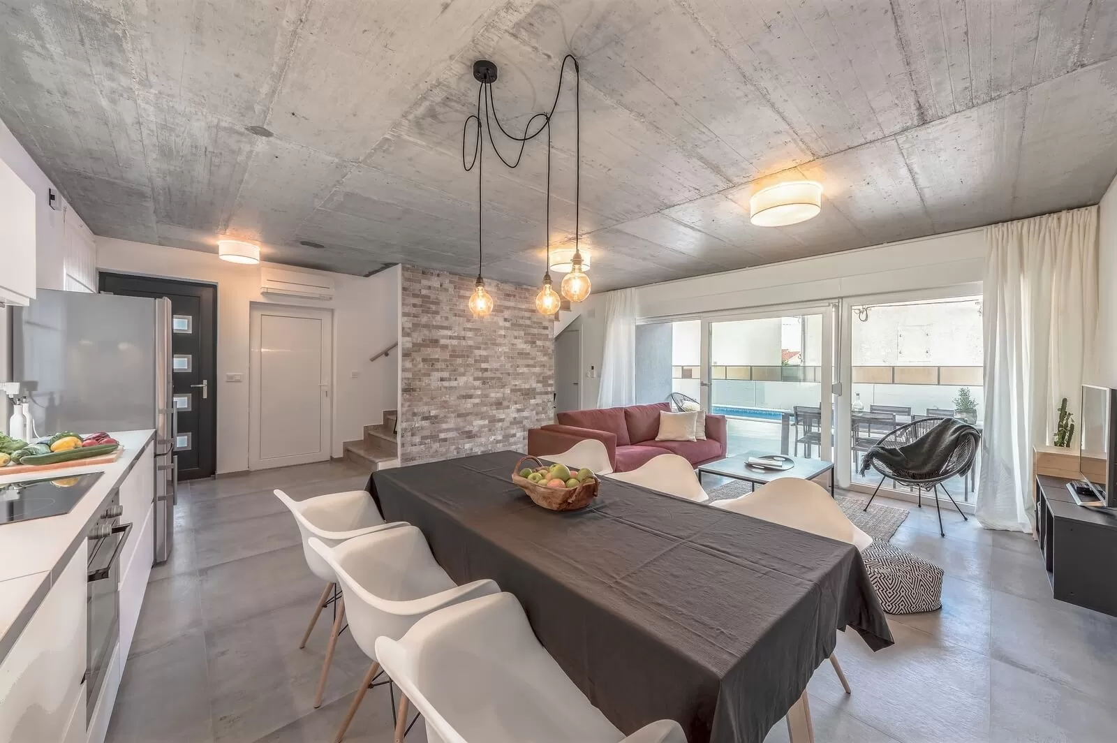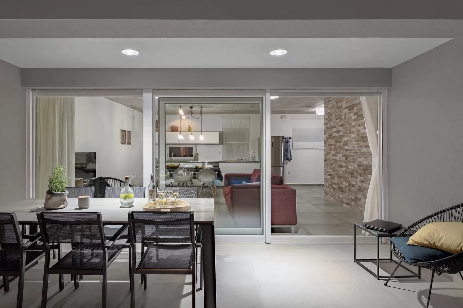 Unutrašnjost Ville San oduševljava svojim modernim i jednostavnim uređenjem, stvarajući savršenu kombinaciju funkcionalnosti i estetike. Svaki detalj je pažljivo odabran kako bi se stvorila atmosfera elegancije i udobnosti. Prostrani dnevni boravak s udobnom sofom i dizajnerskim namještajem pruža idealno okruženje za opuštanje, dok veliki prozori i staklene stijene omogućuju obilje prirodnog svjetla i pružaju prekrasan pogled na okolni krajolik. Za ljubitelje tehnologije, dnevni boravak je opremljen najnovijim TV-om s pristupom streaming uslugama poput Netflixa, omogućujući vam da uživate u omiljenim filmovima i serijama. Kuhinja je opremljena vrhunskom modernom opremom, uključujući aparat za kavu, hladnjak, pećnicu, perilicu za suđe i toster, što olakšava pripremu ukusnih obroka. Blagovaonica nudi intimno okruženje za obiteljske obroke ili večernje zabave, dok velika staklena vrata vode izravno na vanjsku terasu, stvarajući savršen protok između unutarnjeg i vanjskog prostora. Na najvišoj terasi, gosti mogu uživati u spektakularnom panoramskom pogledu koji oduzima dah, idealnom za jutarnju kavu ili večernji koktel uz zalazak sunca. Vanjski prostor je pravo malo utočište, s bazenom okruženim udobnim ležaljkama koje pozivaju na sunčanje i opuštanje. Potpuno ograđen posjed jamči privatnost i sigurnost, a maleno dvorište ispunjeno sitnim kamenčićima doprinosi opuštajućoj atmosferi. Dodatne pogodnosti uključuju Wi-Fi, perilicu rublja, sušilo za kosu, roštilj i opremu za roštilj, kao i dječji krevet, osiguravajući da svi gosti imaju sve što im je potrebno za savršen odmor. S pažnjom posvećenom svakom detalju, Villa San pruža savršeno okruženje za nezaboravan odmor u srcu prekrasne Istre.