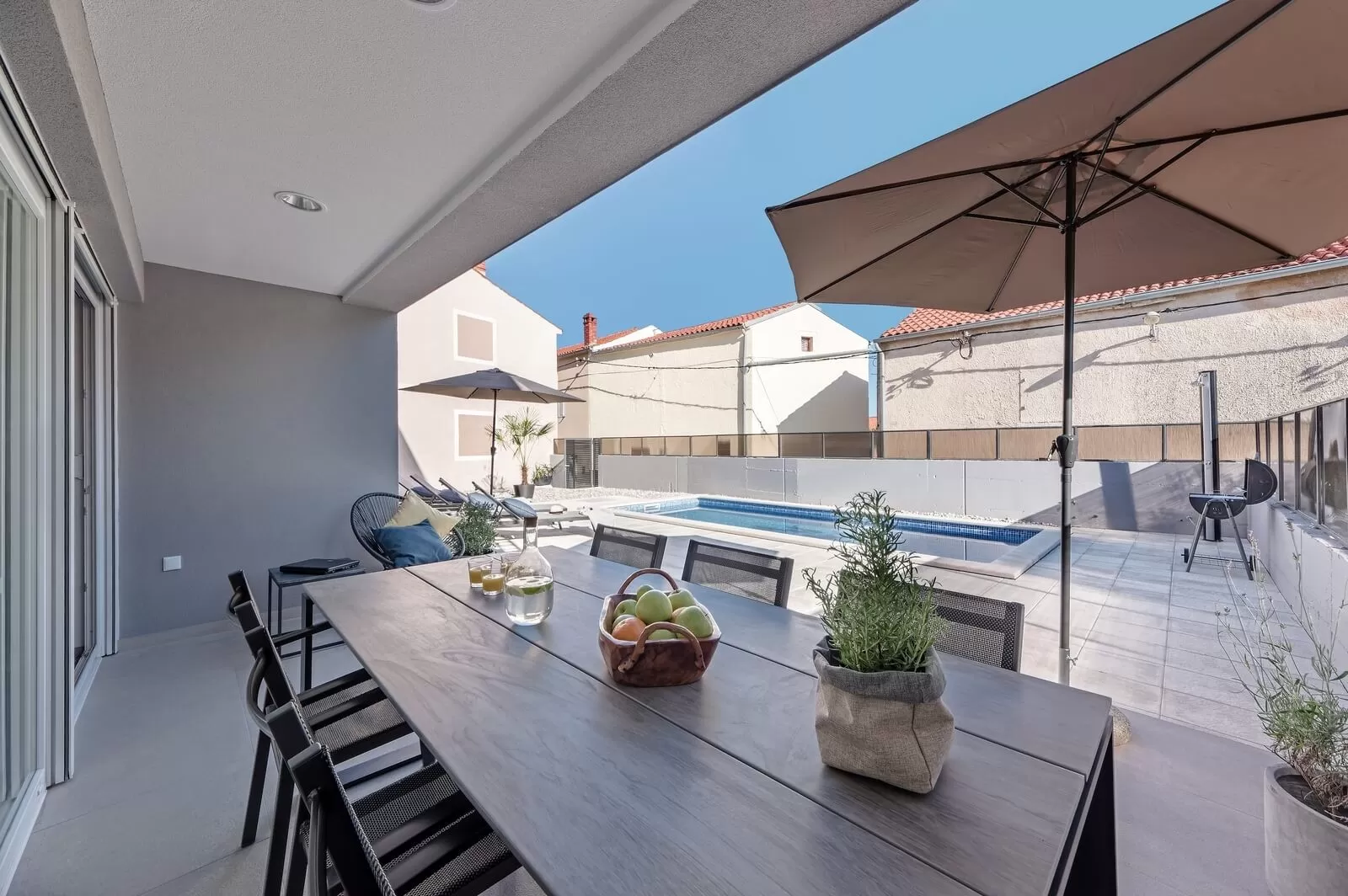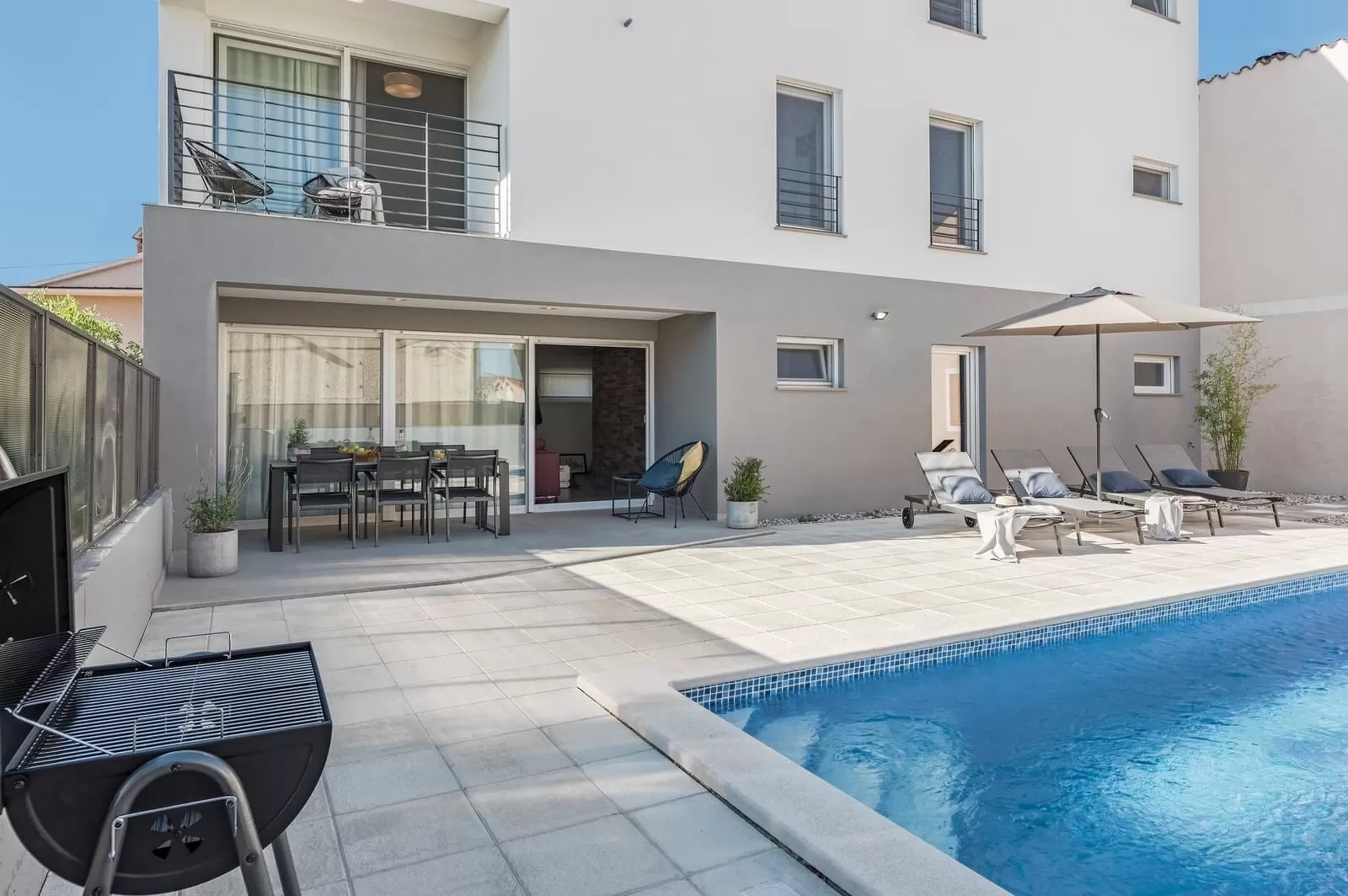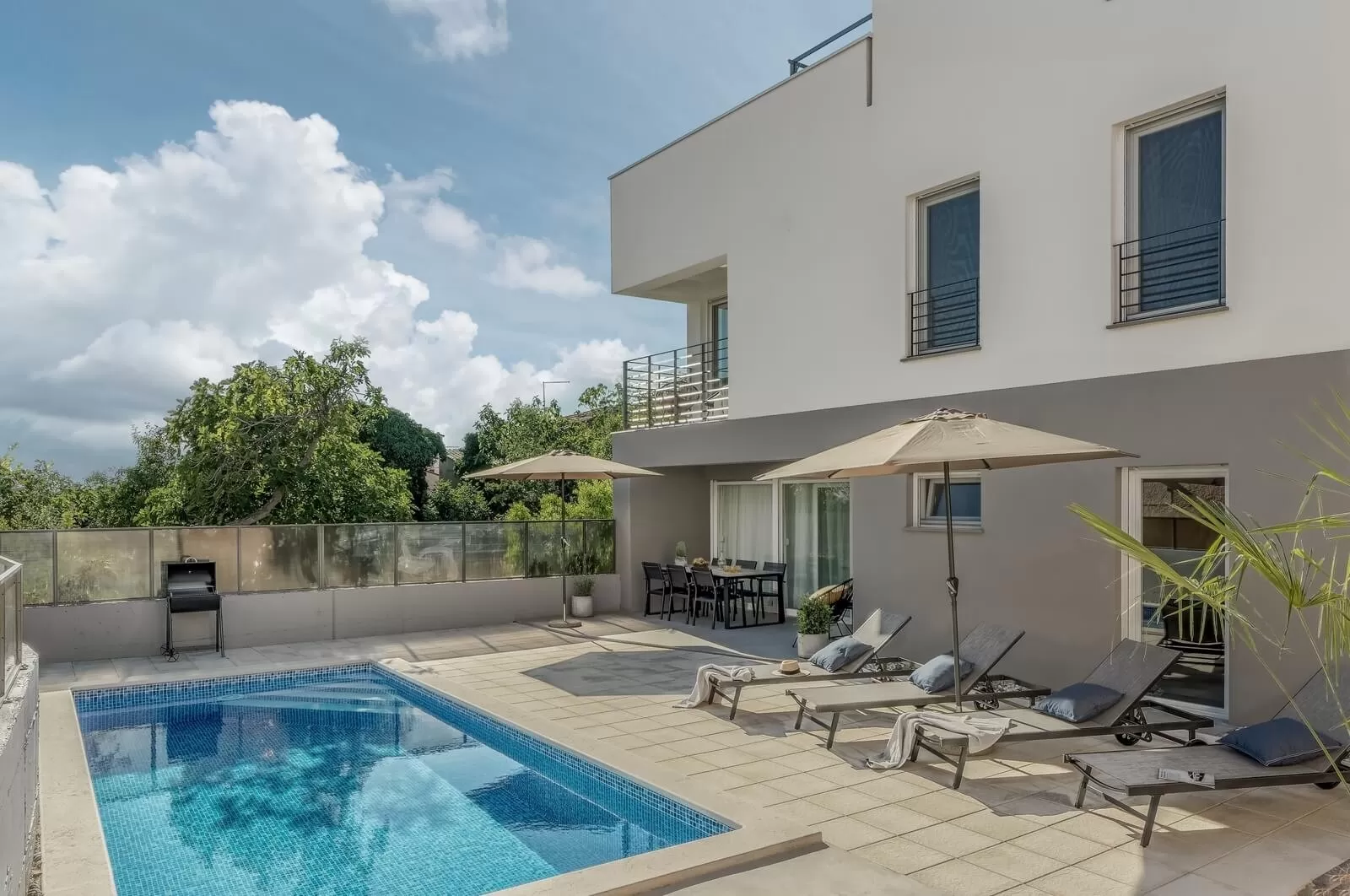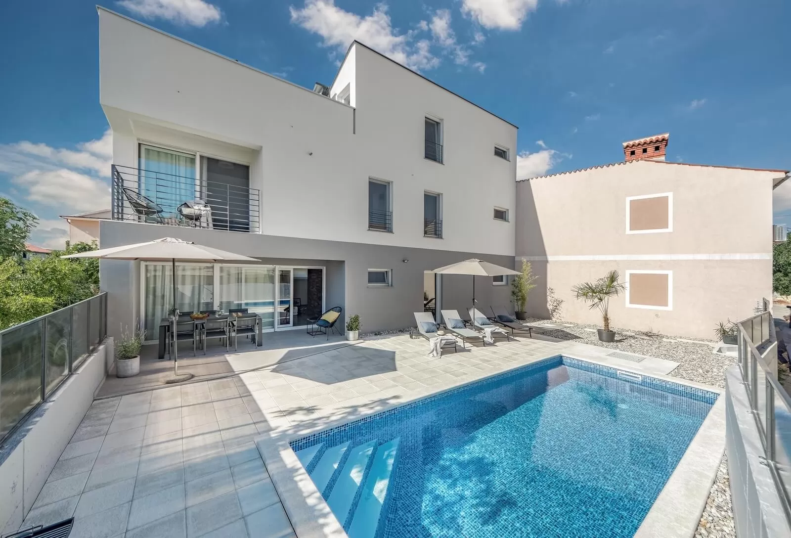 Villa San, smještena u malom mjestu Ližnjan blizu Pule u Istri, predstavlja savršenu oazu luksuza i privatnosti. Ova elegantna vila, površine 170m2, nudi idealno utočište za šest osoba. Sa svoje tri prostrane spavaće sobe, od kojih je svaka opremljena vlastitom kupaonicom, Villa San pruža neusporedivu udobnost i privatnost. Prostrani vanjski bazen okružen sitnim kamenčićima i potpuno ograđen posjed jamče potpuni mir i opuštanje. Izgrađena 2018. godine, Villa San je pažljivo osmišljena kako bi ispunila sve želje i potrebe svojih gostiju, pružajući savršen spoj modernog dizajna i udobnosti.